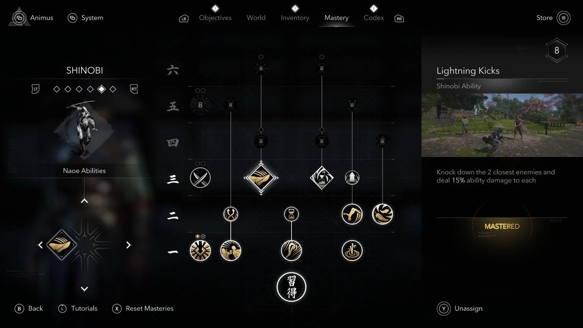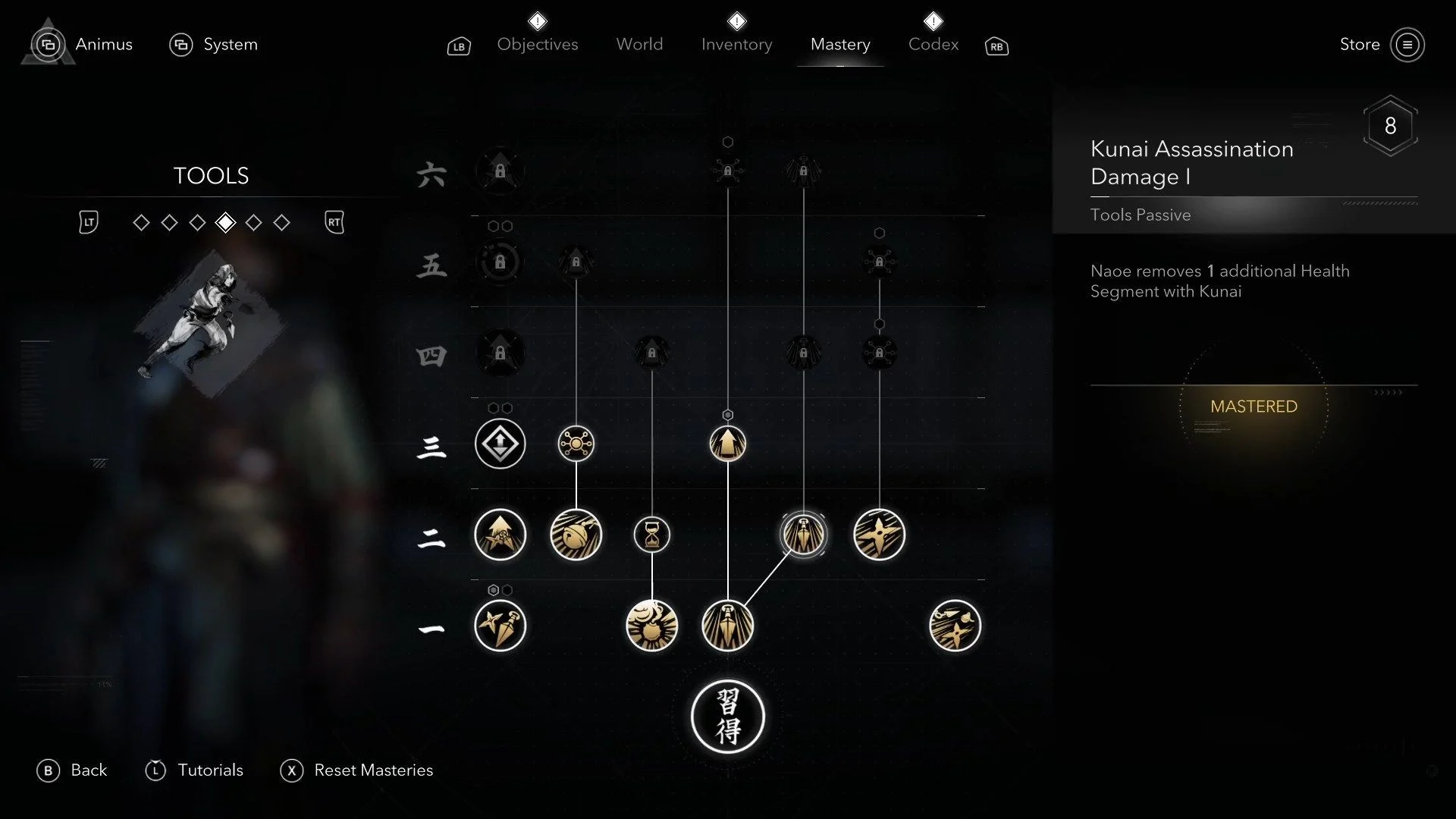 - Новые инструменты: Открывает дымовые шашки, сюрикены, колокольчики синоби. Бери сразу, чтобы получить все инструменты Наоэ.