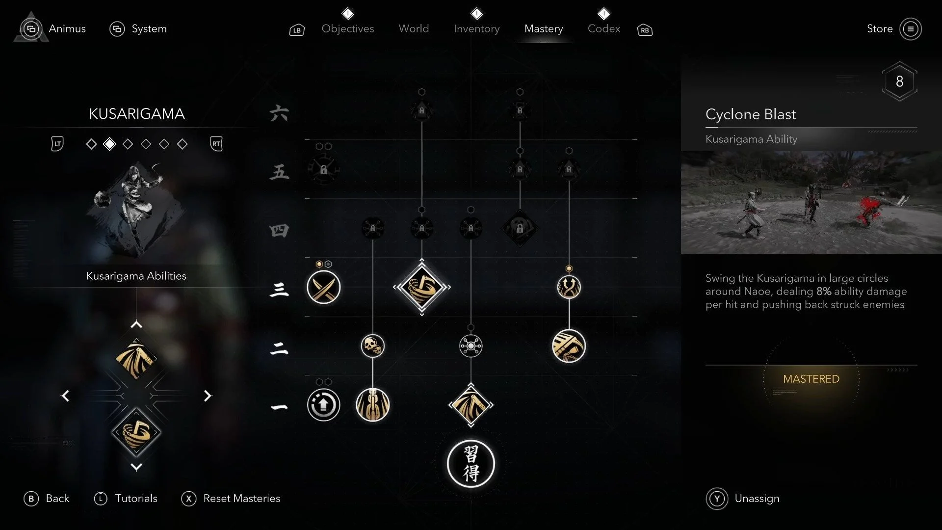 - Быстрый удар: Бей сразу после атаки и получишь комбо из двух ударов вместо одного. Кусаригама не очень против одиноких врагов, а этот навык это исправляет.