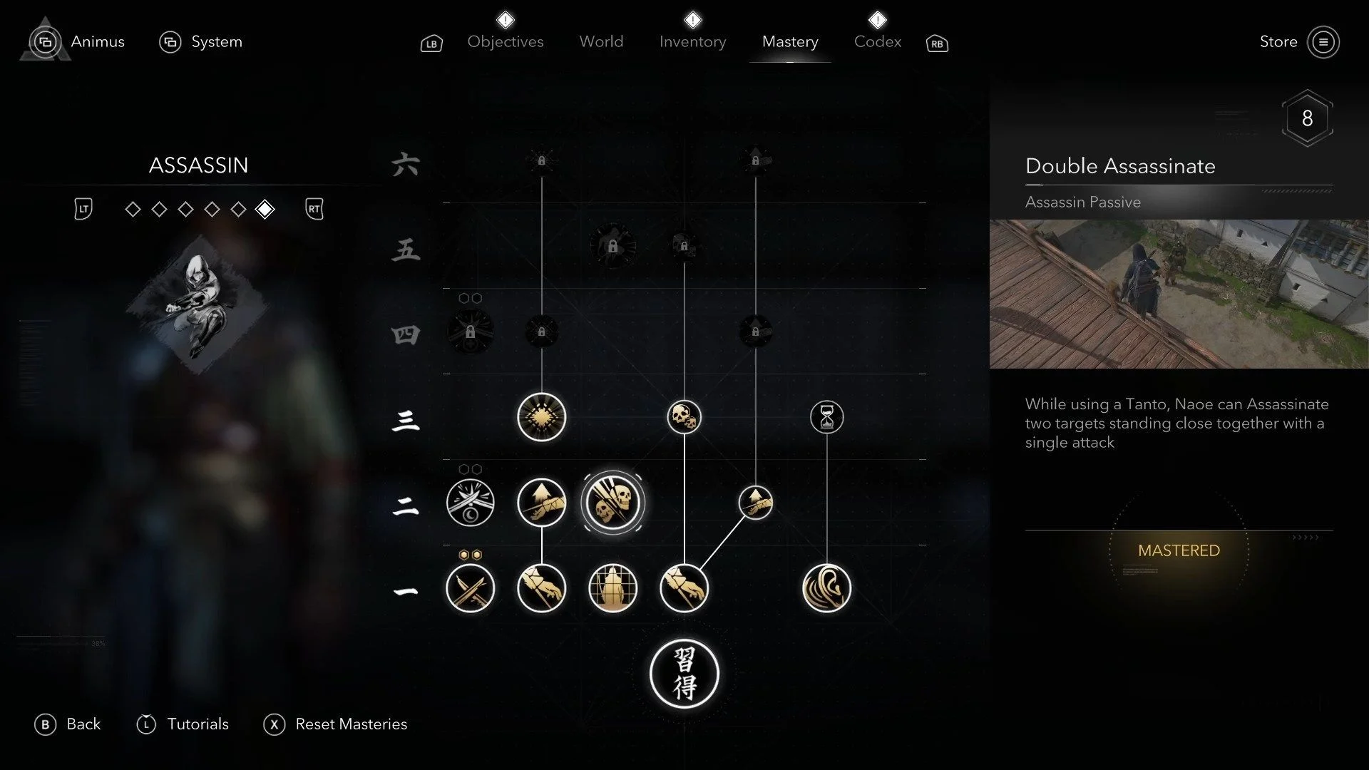 - Двойное убийство: С танто Наоэ может убить сразу двух врагов, стоящих рядом. Супер полезно в сложных ситуациях.