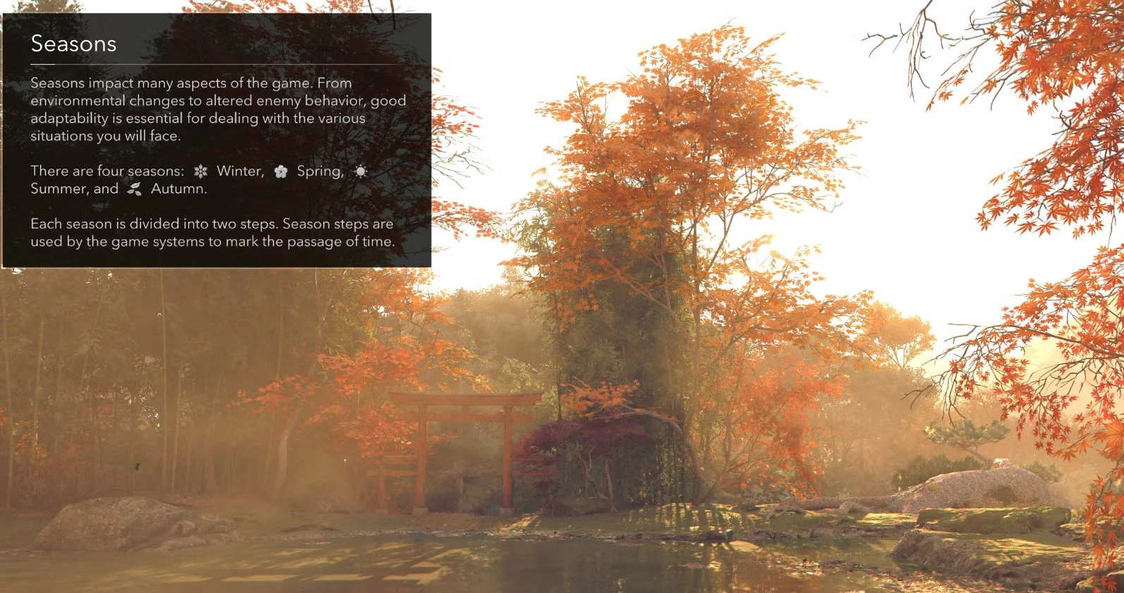 В Assassin's Creed Shadows каждый сезон состоит из двух частей, поэтому анимация смены времени года не всегда означает переход к совершенно новому сезону. Если компас заполнен только наполовину, анимация означает смену середины сезона. При этом игроки получат все преимущества полной смены: число доступных разведчиков обновится, контрабандные товары вернутся в убежище, а уровень розыска Наоэ и Ясукэ будет обнулен.