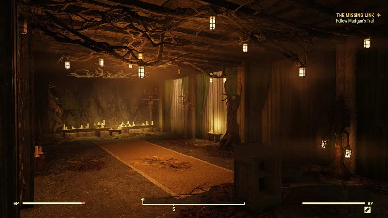 Взломайте замок второго уровня в задней части музея и спуститесь вниз. Вы обнаружите комнату, полностью посвященную Человеку-мотыльку. Здесь же будет алтарь, корни деревьев на потолке и жуткие статуи у стен. Здесь есть несколько записок, из которых можно получить дополнительную информацию. К сожалению, нам не удалось найти способ, как присоединиться к Культу Человека-мотылька или начать какие-либо квесты.