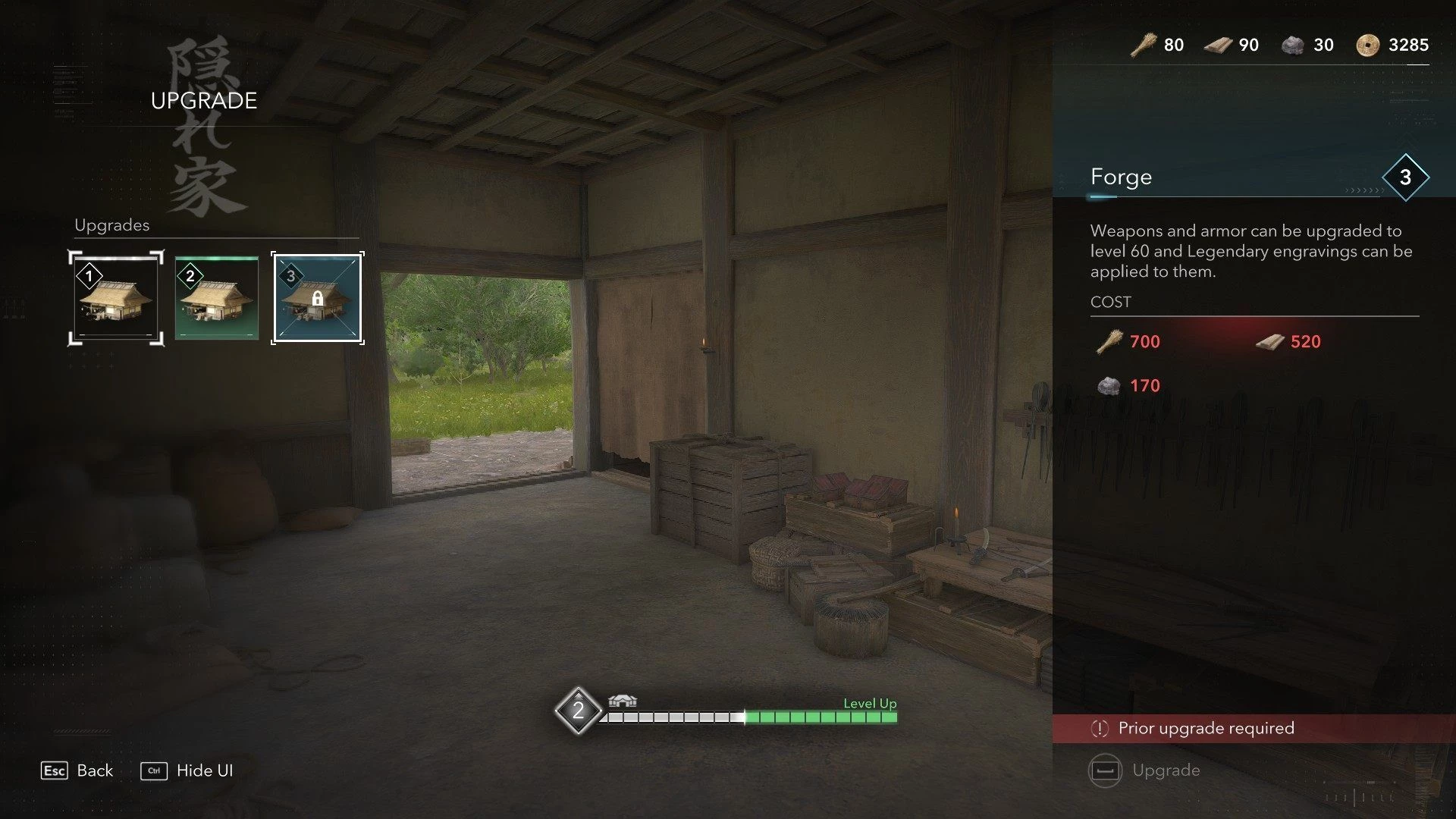 У кузницы есть три уровня улучшения: