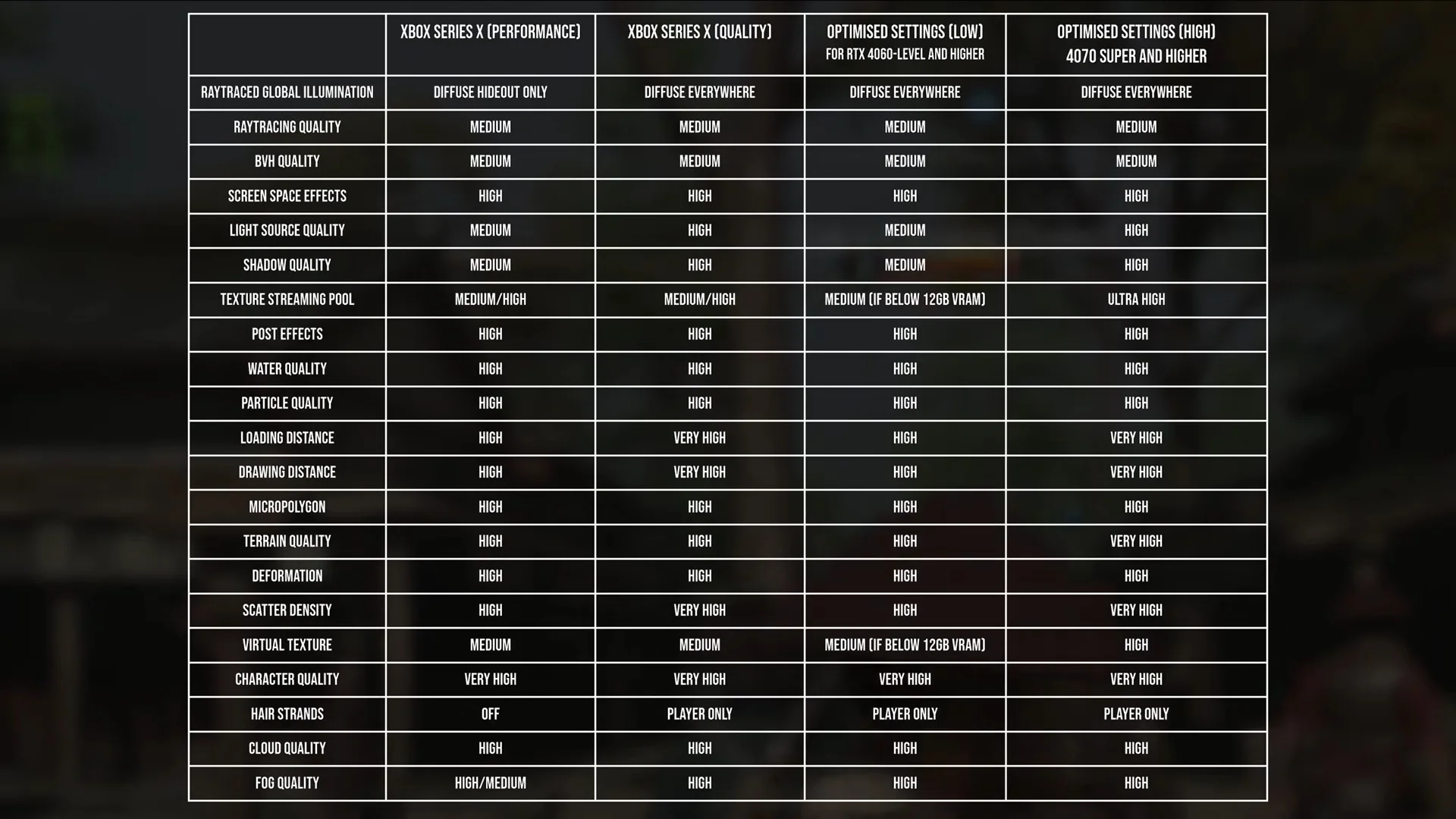 Многочисленные настройки графики могут запутать пользователя, поэтому Digital Foundry подготовила таблицу с рекомендованными параметрами.
