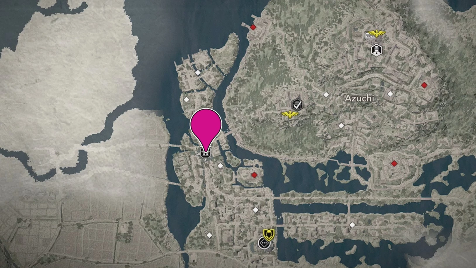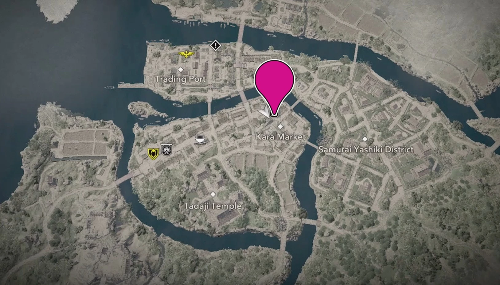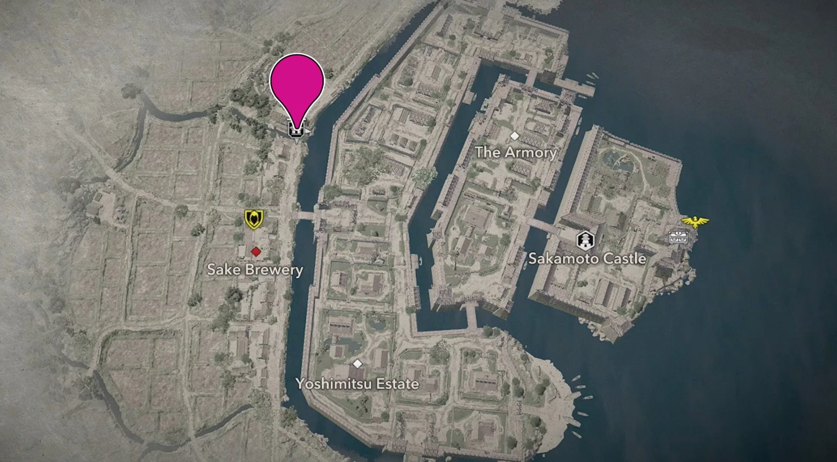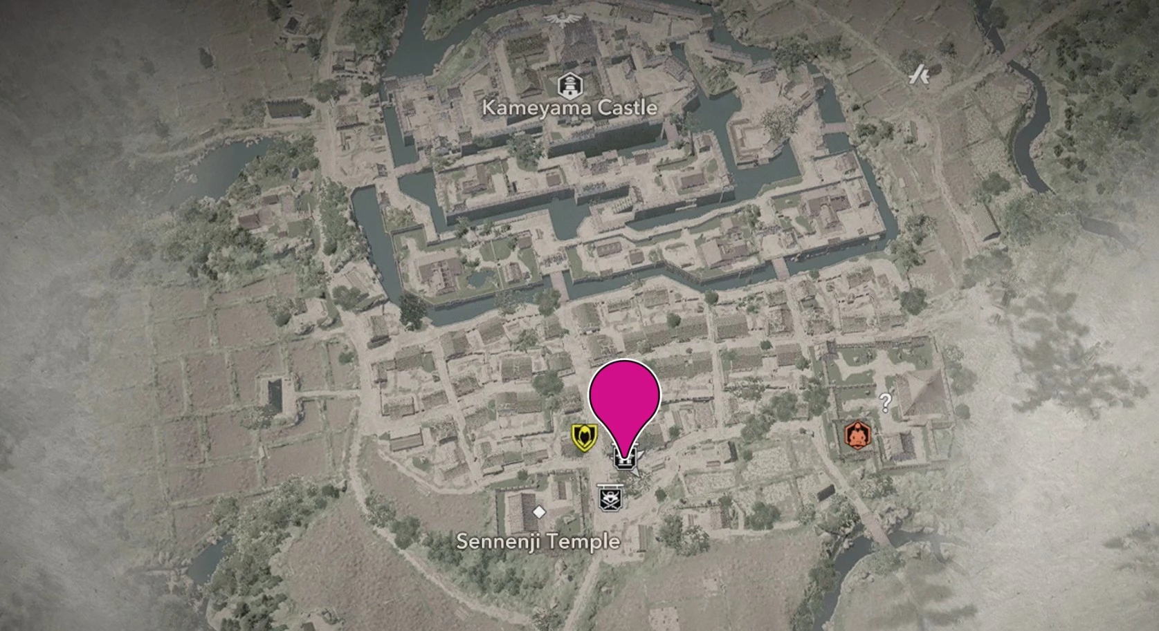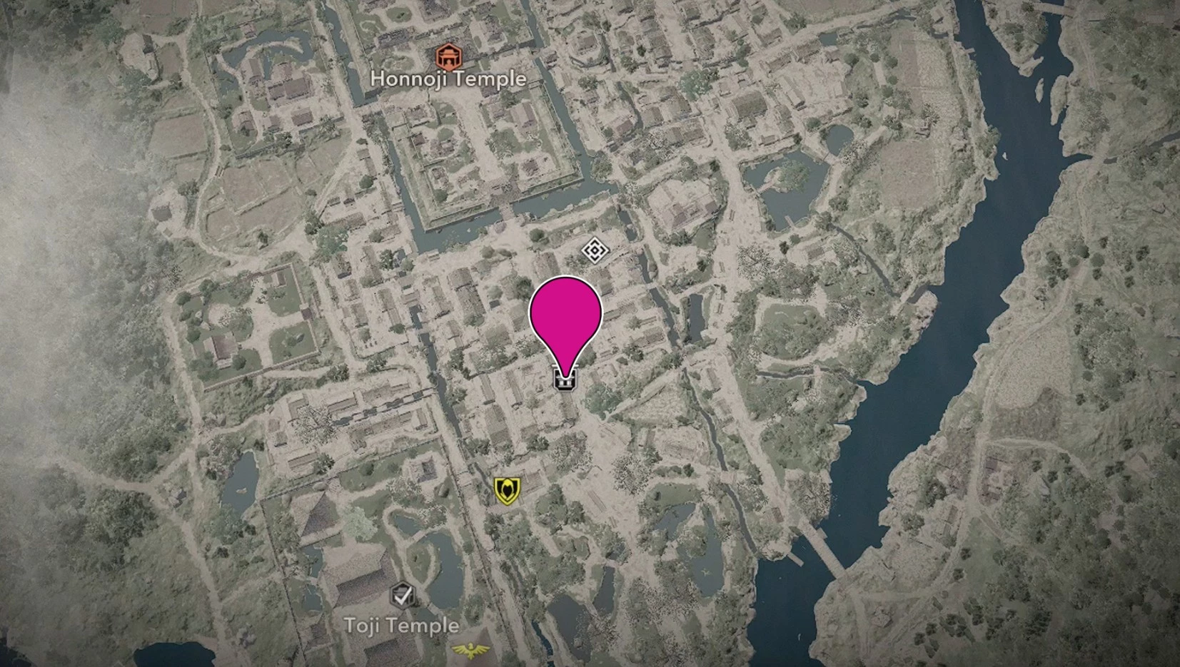 Прибыв в Ямасиро, направляйтесь в Киото, крупнейший город провинции, заметный на карте. В Киото посетите Императорский храм и двигайтесь на запад. Дом Сэн-но Рикю расположен неподалёку, в северо-западной части города, напротив храма. Ориентируйтесь на синий маркер. Вероятно, стартовый маркер задания (чёрно-белый ромб) отображается в любом режиме.