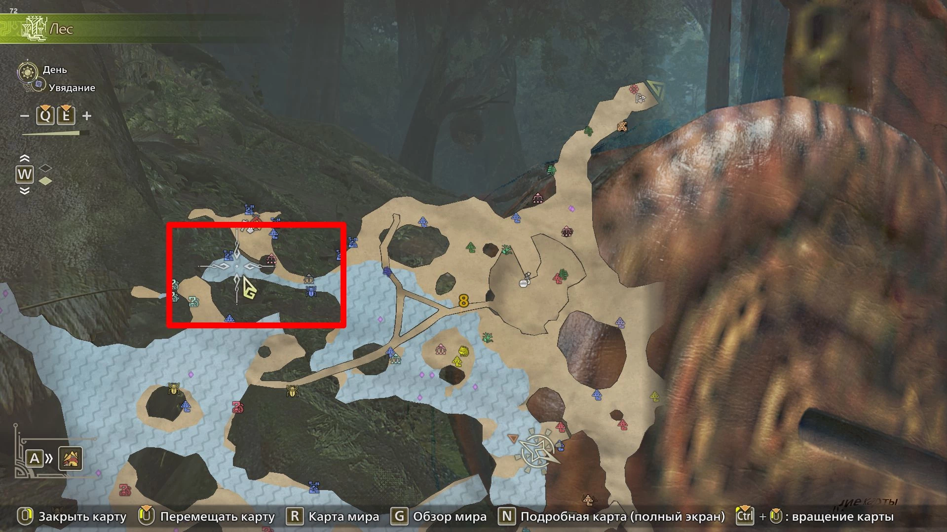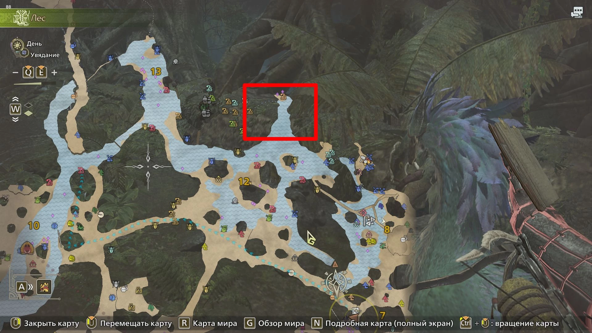 - Зона 12 Багряного леса. Здесь есть богатые отложения окаменелостей, которые служат хорошим ориентиром. Пройдя через ущелье, вы обнаружите водоем, где обитают золотые и платиновые рыбки.