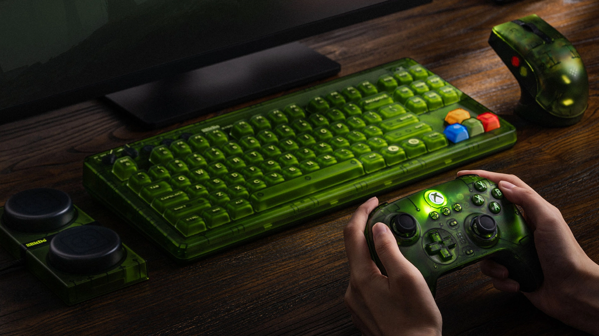 Зелёный стоит 70 баксов, а чёрный и белый подешевле – 52 бакса. И да, у 8BitDo уже есть клава и мышка в таком же полупрозрачном стиле, так что можно собрать полный комплект. Ещё есть похожий контроллер от Backbone для смартфонов.