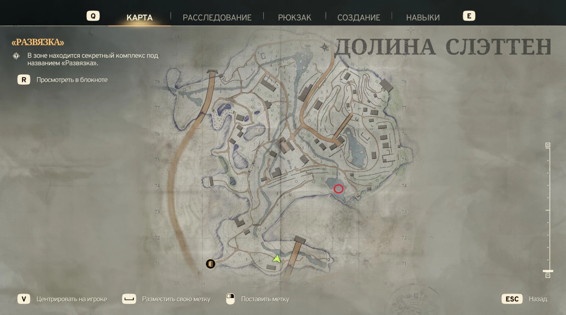 После выхода из начального бункера, в пруду в долине Слэттен (координаты 29.1 в.д. 73.9 с.ш.) вы найдете труп на островке, а рядом с ним – металлодетектор.