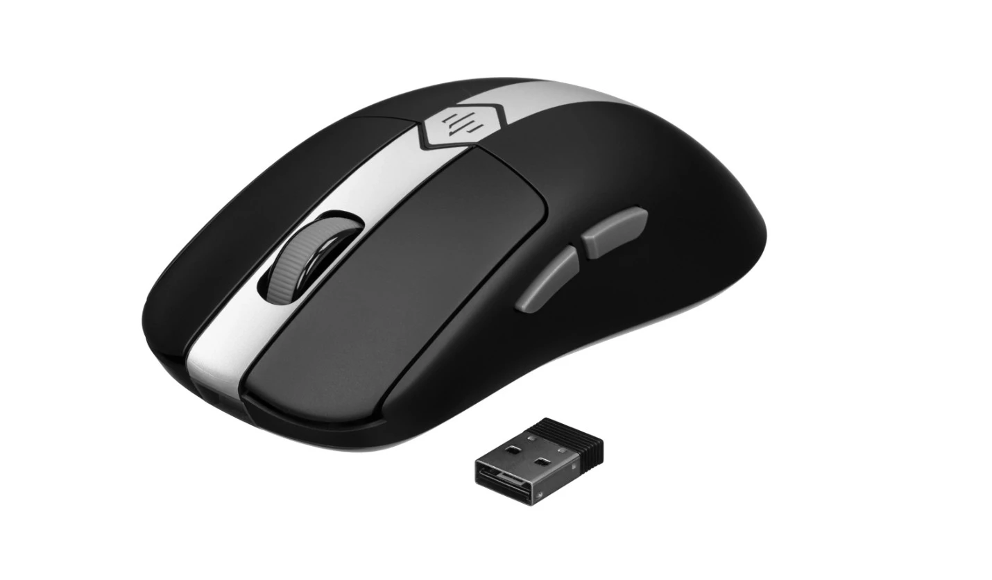 Наш образец выполнен в черном цвете и, как и белая версия, имеет светло-серую полосу, проходящую через весь корпус с логотипом Dark Project. Мышь обладает симметричной формой, но дополнительные кнопки расположены только слева. Здесь же находится небольшой индикатор заряда батареи. Других элементов подсветки у Dark Project ME5 нет, что придает ей минималистичный внешний вид, который наверняка оценят любители сдержанного дизайна.