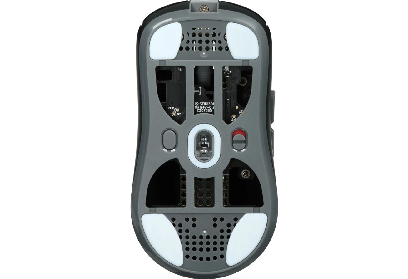 - Переключатели: основные – Huano Transparent Blue Shell Pink Dot (80 млн нажатий), боковые – Huano Black Shell White Dot (3 млн нажатий), колеса – Kailh 2DV (3 млн нажатий).