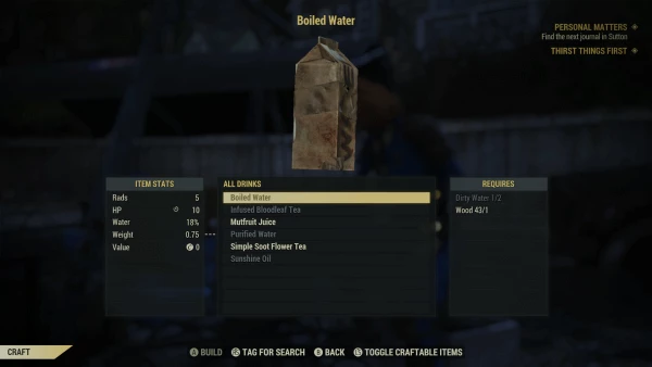 Как и в Fallout 4, в игре нужно обрабатывать воду, чтобы сделать ее более безопасной для употребления.