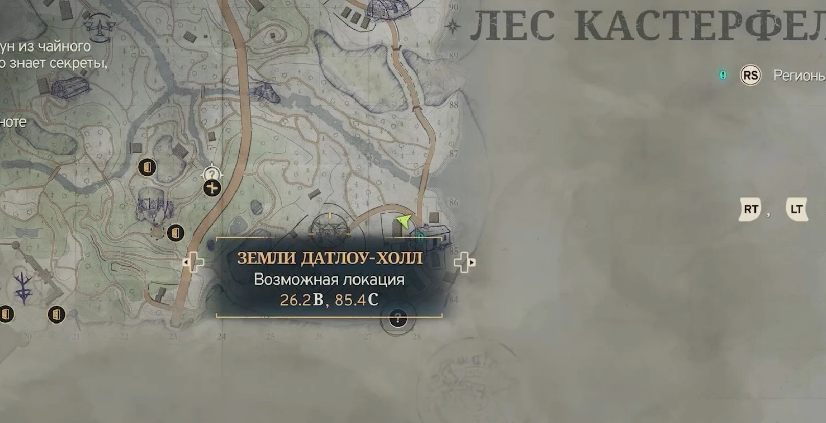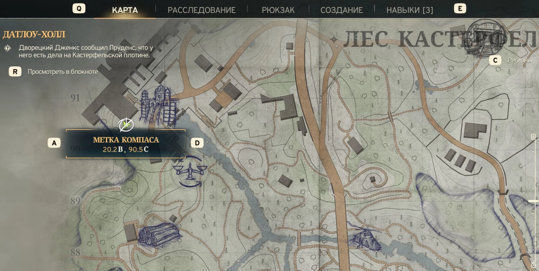 Если это задание еще не активировано, значит, вы не достигли района Датлоу-Холл в Кастерфелском лесу, расположенного по координатам 26.2 в.д., 85.4 с.ш.