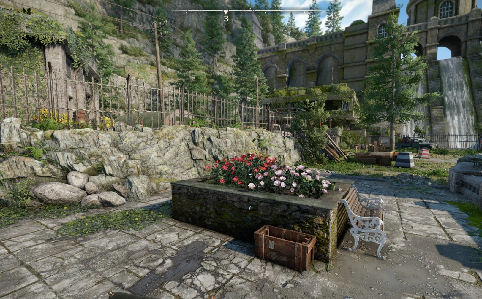Подняться можно по ступеням на левом и правом берегу реки, но следует проявлять крайнюю осторожность, так как на вершине расположена небольшая база мародеров, охраняемая несколькими людьми.