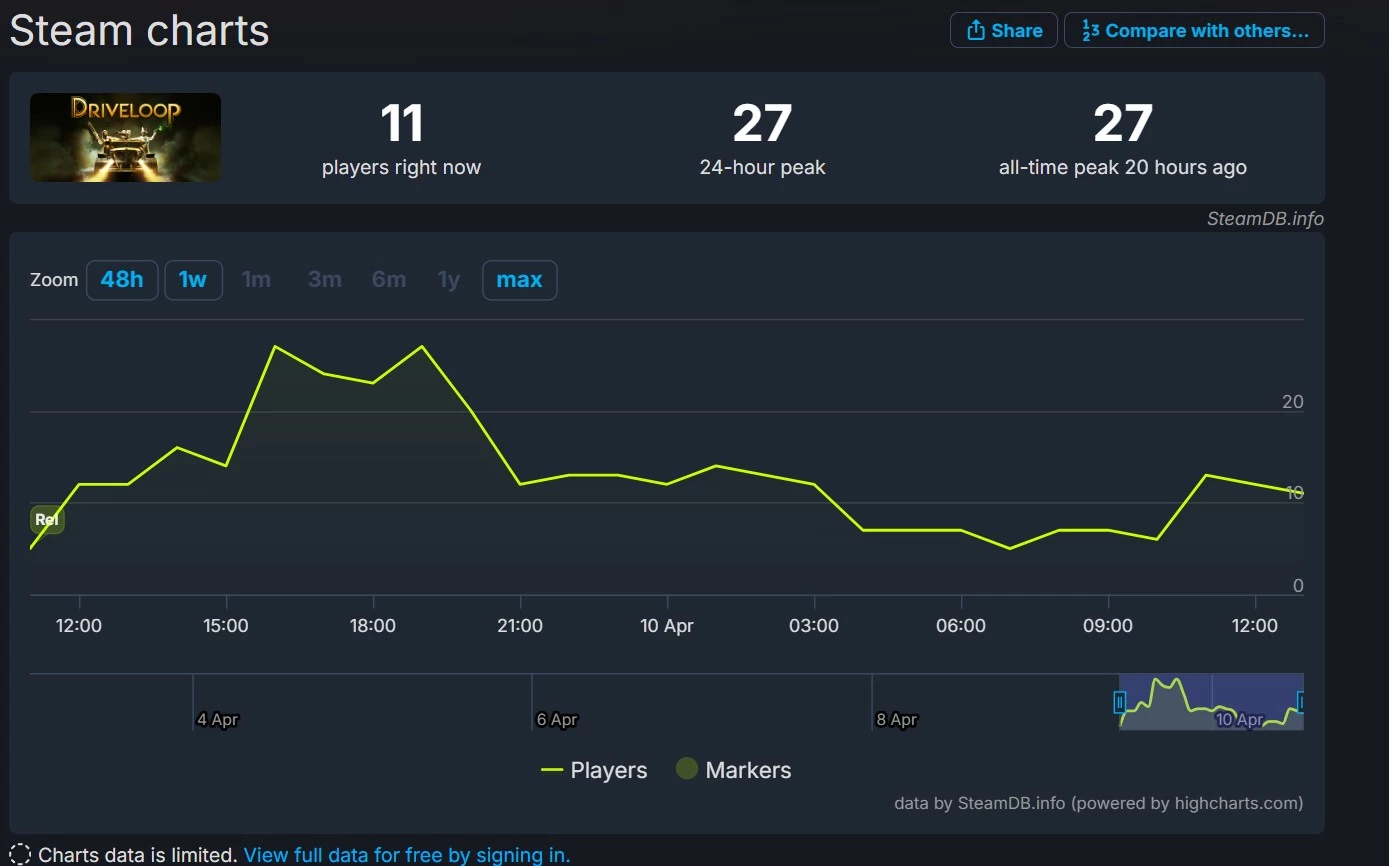 Пиковый онлайн составил 27 игроков. Игра продается в Steam за 385 рублей, до 23 апреля действует скидка 11%. Присутствует русский текстовый перевод. Разработчики обещают в ближайшее время представить дорожную карту обновлений.