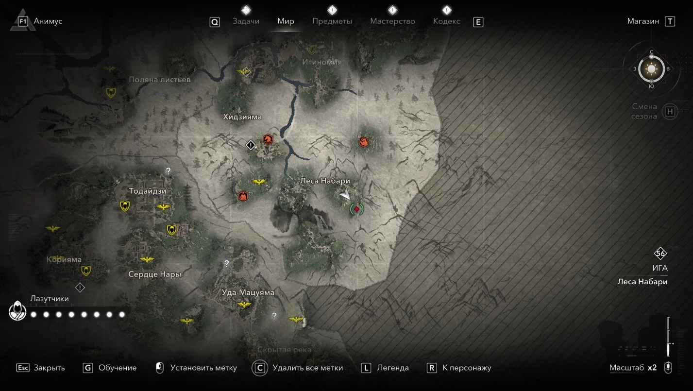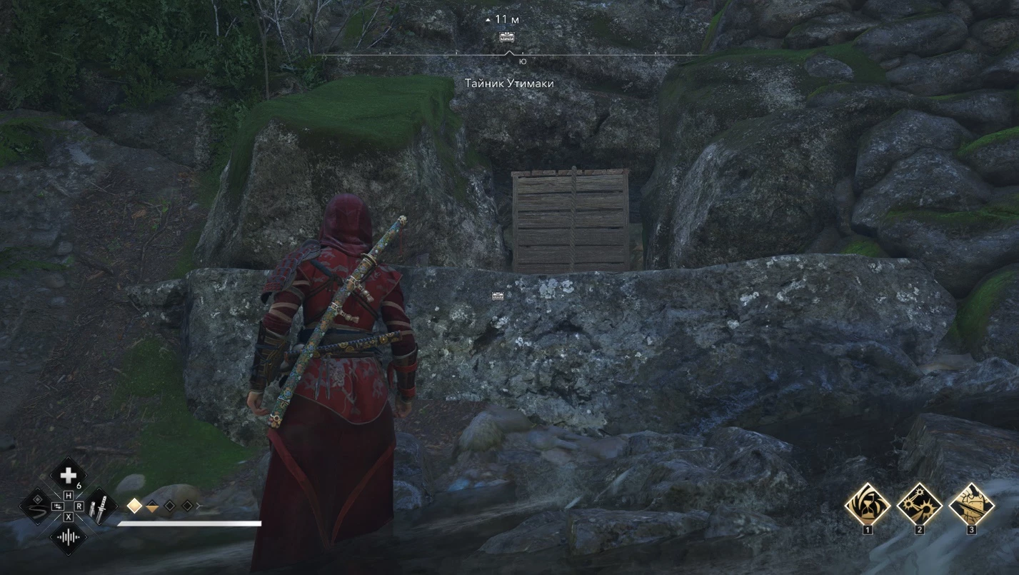 Где найти: Легендарный сундук с сокровищами скрыт в Логове Четырёх Демонов (провинция Ига, Леса Набари). Проникните вглубь пещеры, уничтожьте противников и найдите сундук рядом с местами хранения ресурсов для контрабанды.