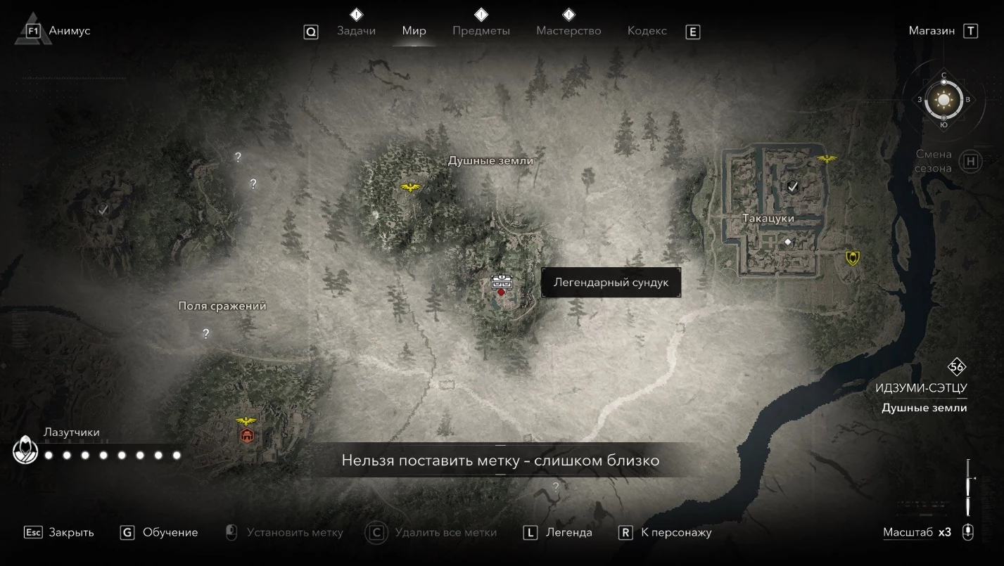 Местонахождение легендарного амулета: Ищите легендарный сундук с сокровищами около ката (активности Ясукэ) в провинции Тамба, в подрегионе Такэда.