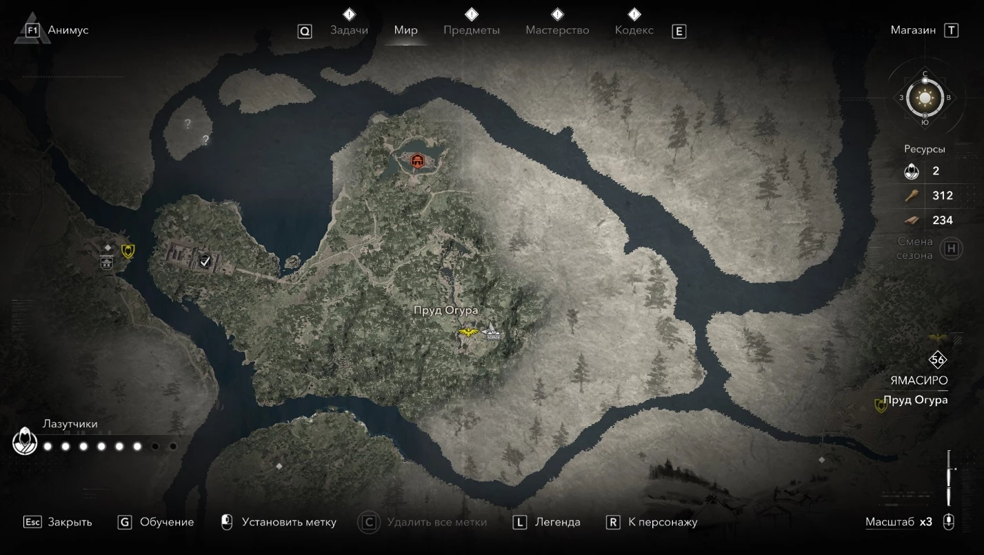 Расположение легендарного амулета: Найдите легендарный сундук с сокровищами возле точки синхронизации Пик Огура (провинция Ямасиро, Пруд Огура).