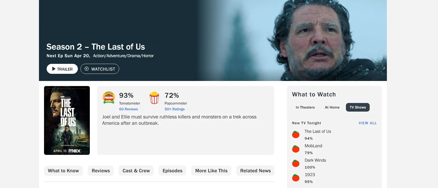 Состоялась премьера второго сезона сериала "The Last of Us". Первый эпизод, названный "Future Days", уже можно посмотреть на платформе Max. Пользователи отмечают наличие русскоязычной озвучки от "Продубляж"/Dubbing Pro.