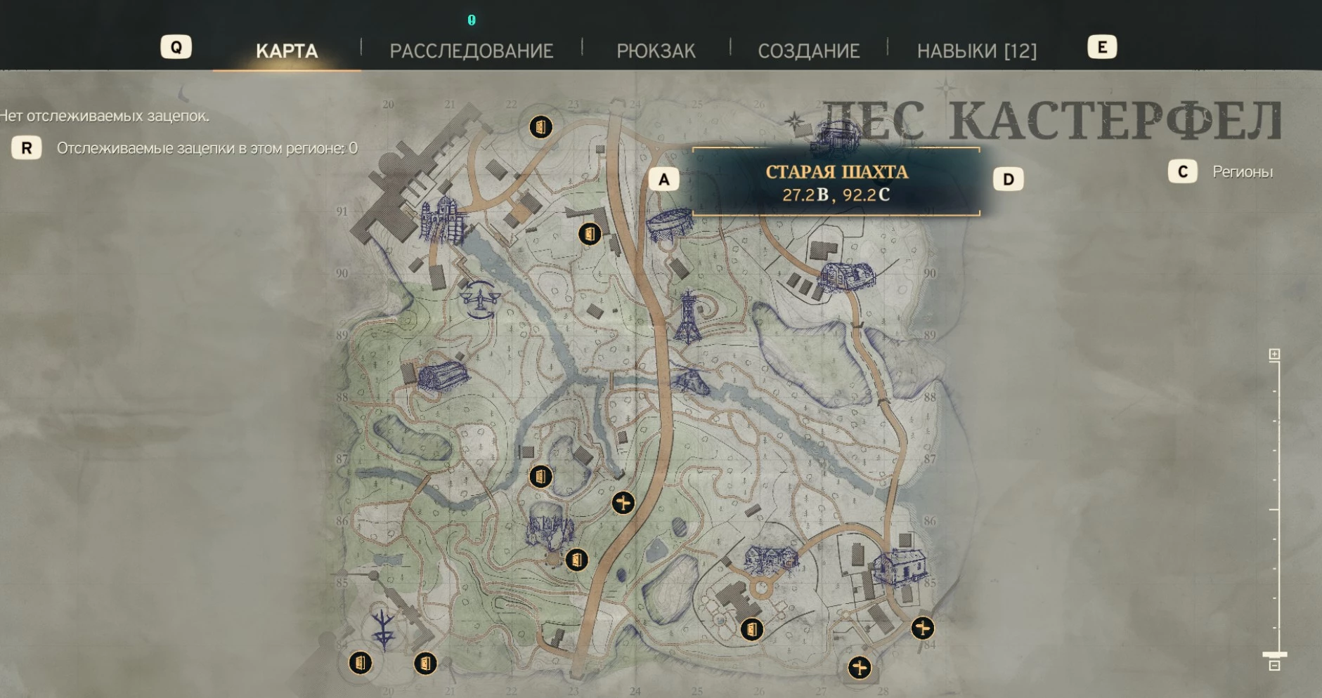 В лесу Кастерфел, ориентируйтесь на старую шахту по координатам 27.2° в.д., 92.2° с.ш.