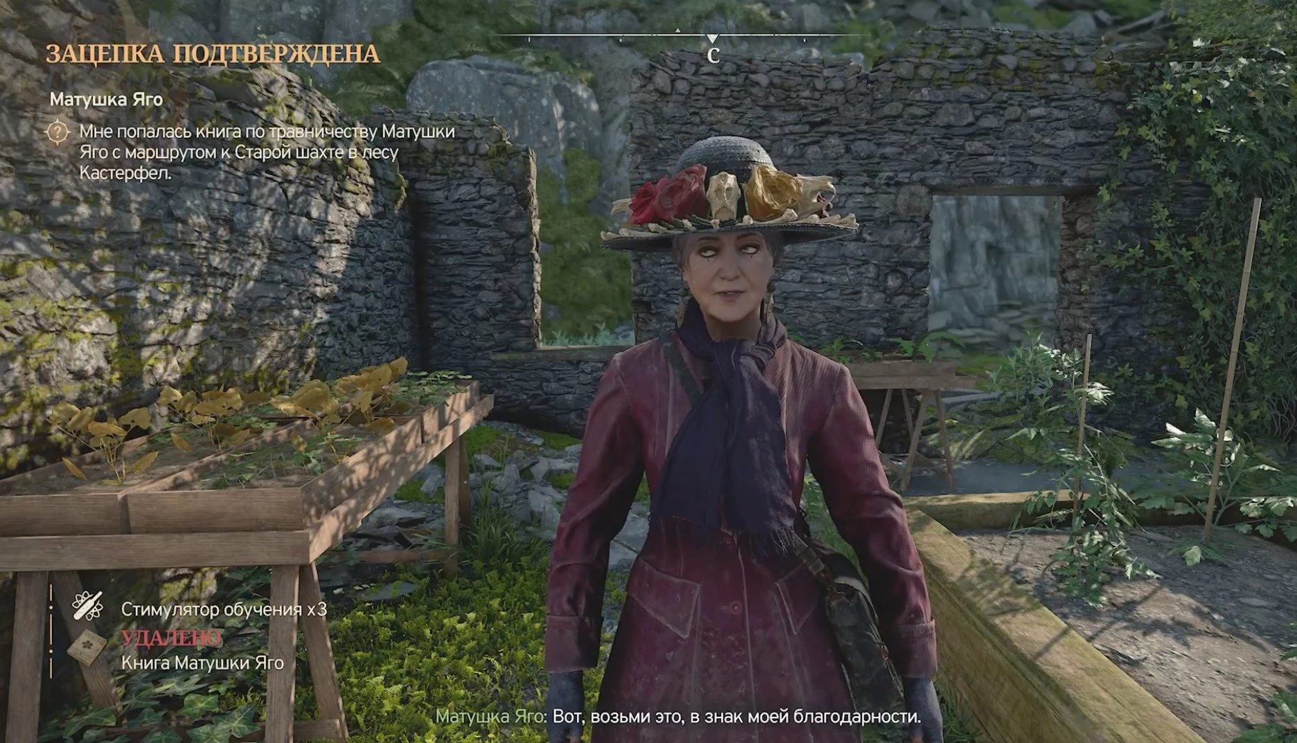 Там вы заметите два стола. На одном из них будет лежать вожделенная книга, принадлежавшая Матушке Яго, а на другом – причина вашего путешествия: рецепт странного тоника.