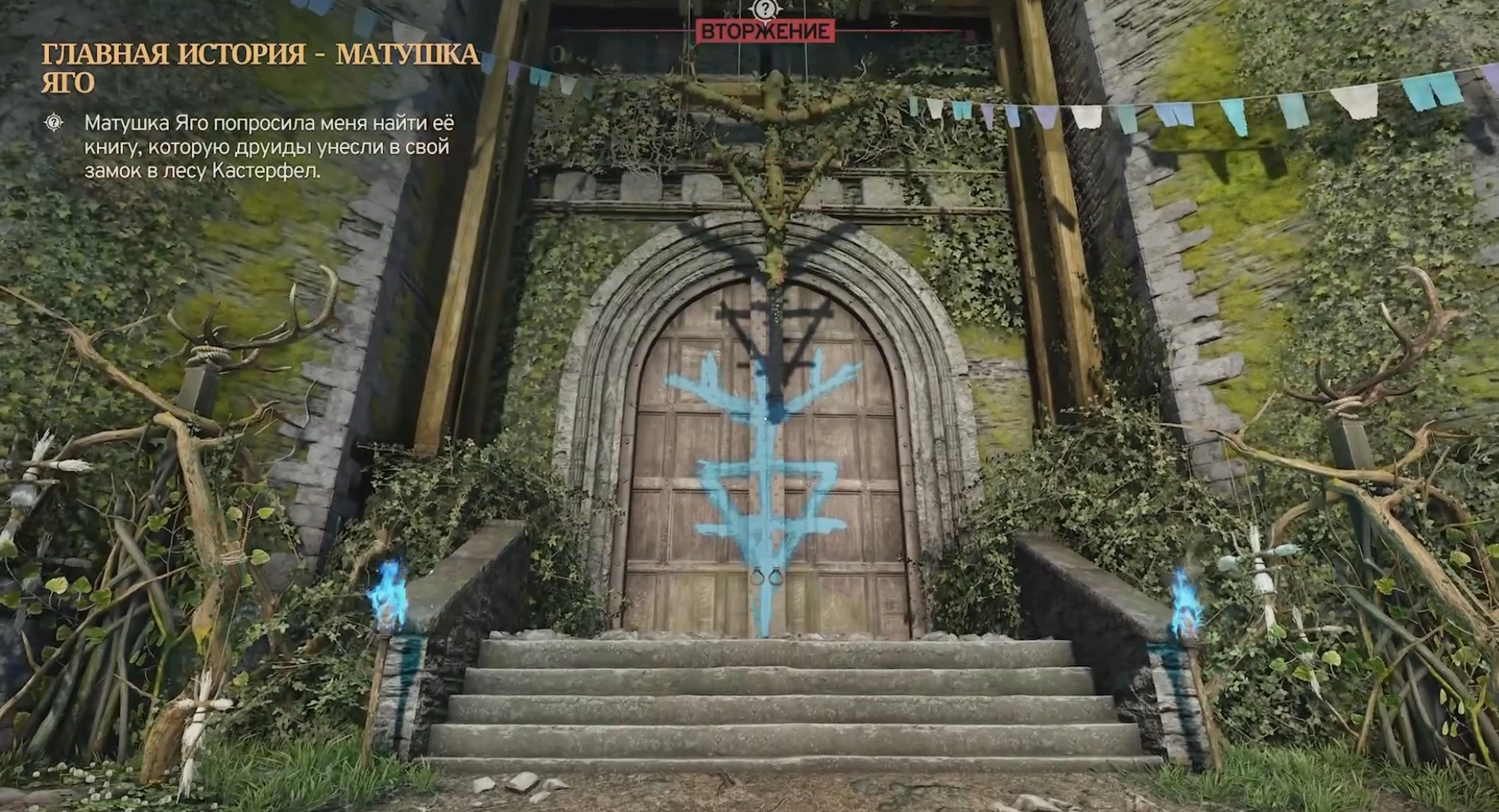 В замке вам, скорее всего, придется сразиться с друидами, поэтому лучше сразу переключиться на лук, чтобы не привлекать лишнее внимание.