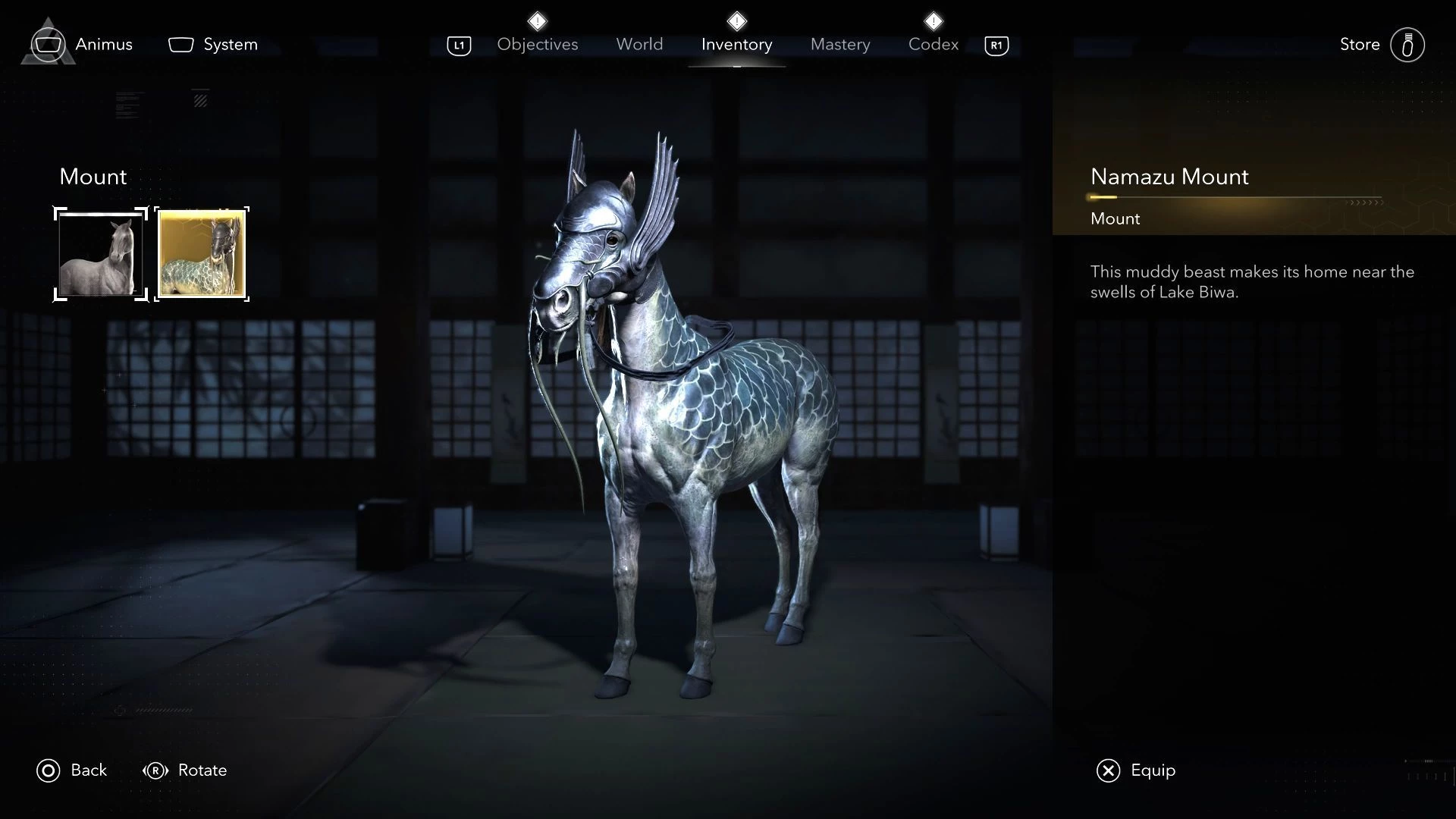 В Assassins Creed Shadows, чтобы выбрать себе крутую лошадку, надо зайти в меню снаряжения и найти там вкладку с маунтами. Там и будет твой "легендарный конь" - ездовое животное Намазу.