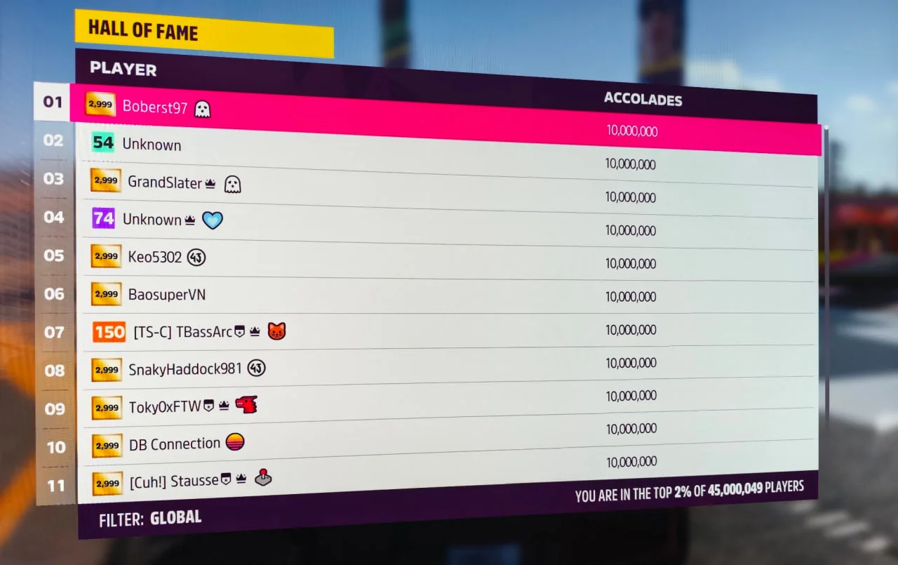 Актуальная статистика "Форзы" отображается в "Зале славы", что позволяет легко отслеживать ее популярность.