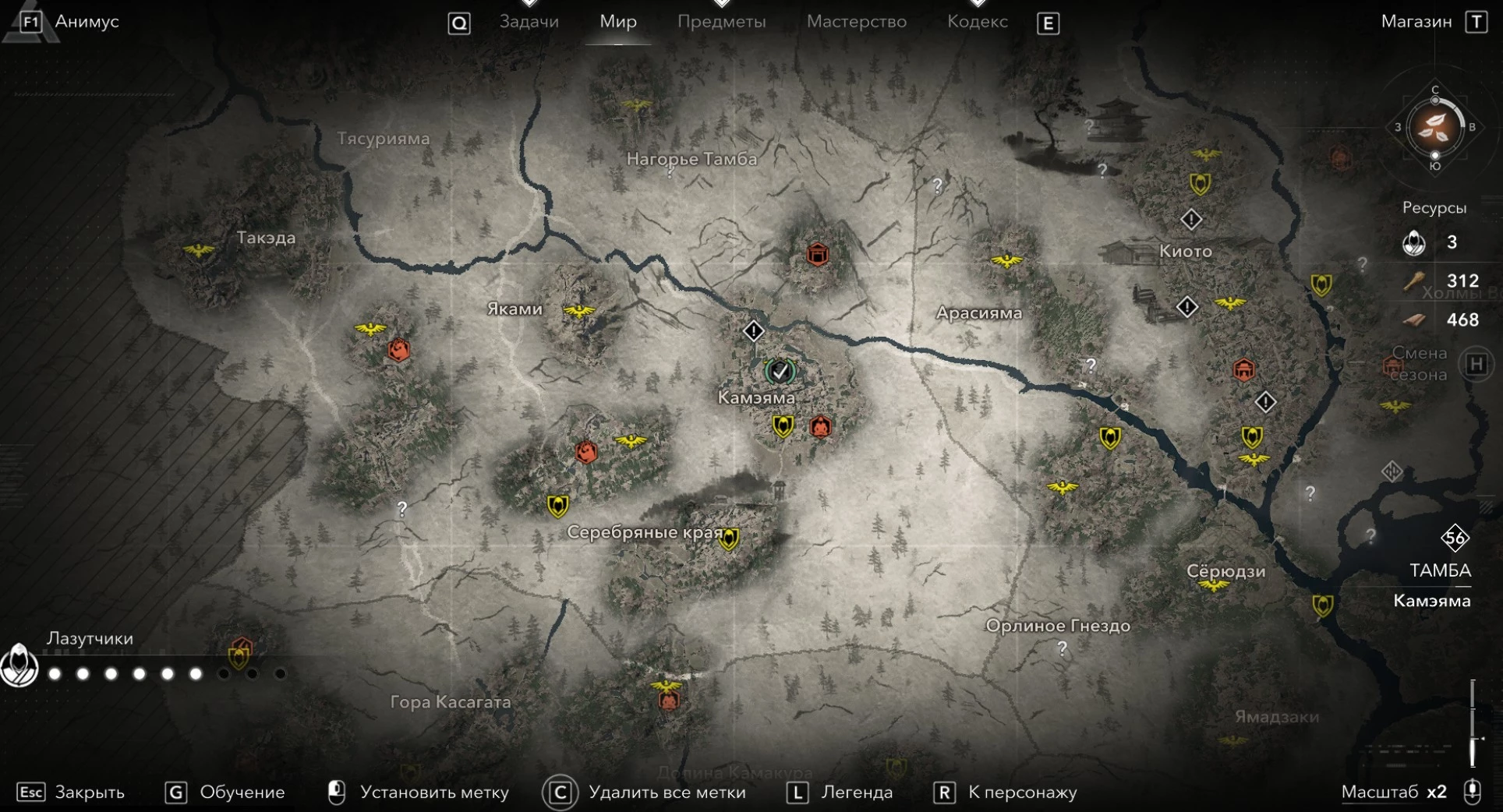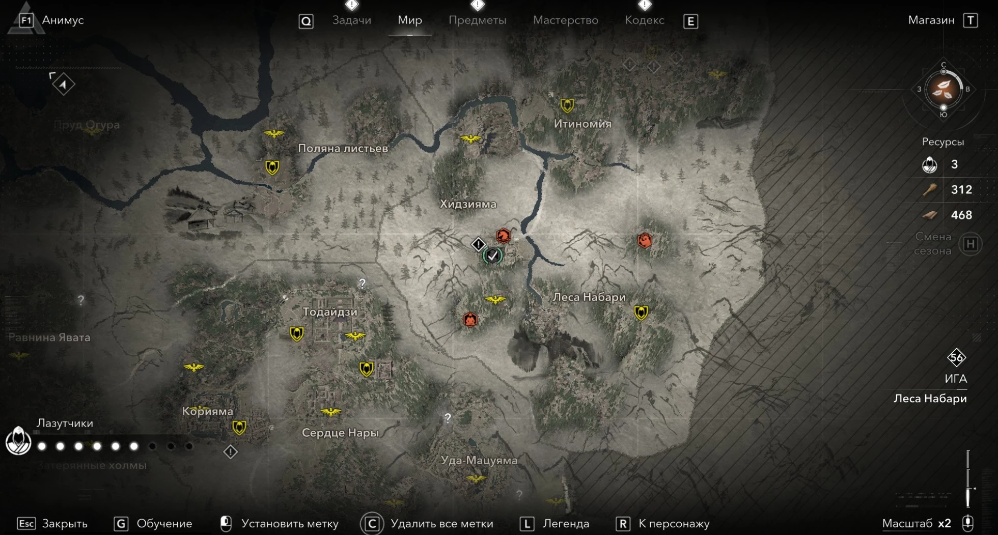 Сокровище: капюшон проворного синоби, замедляющий время при обнаружении игрока.