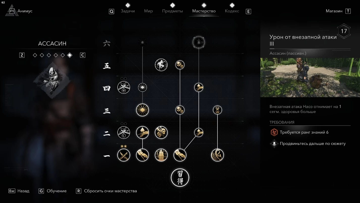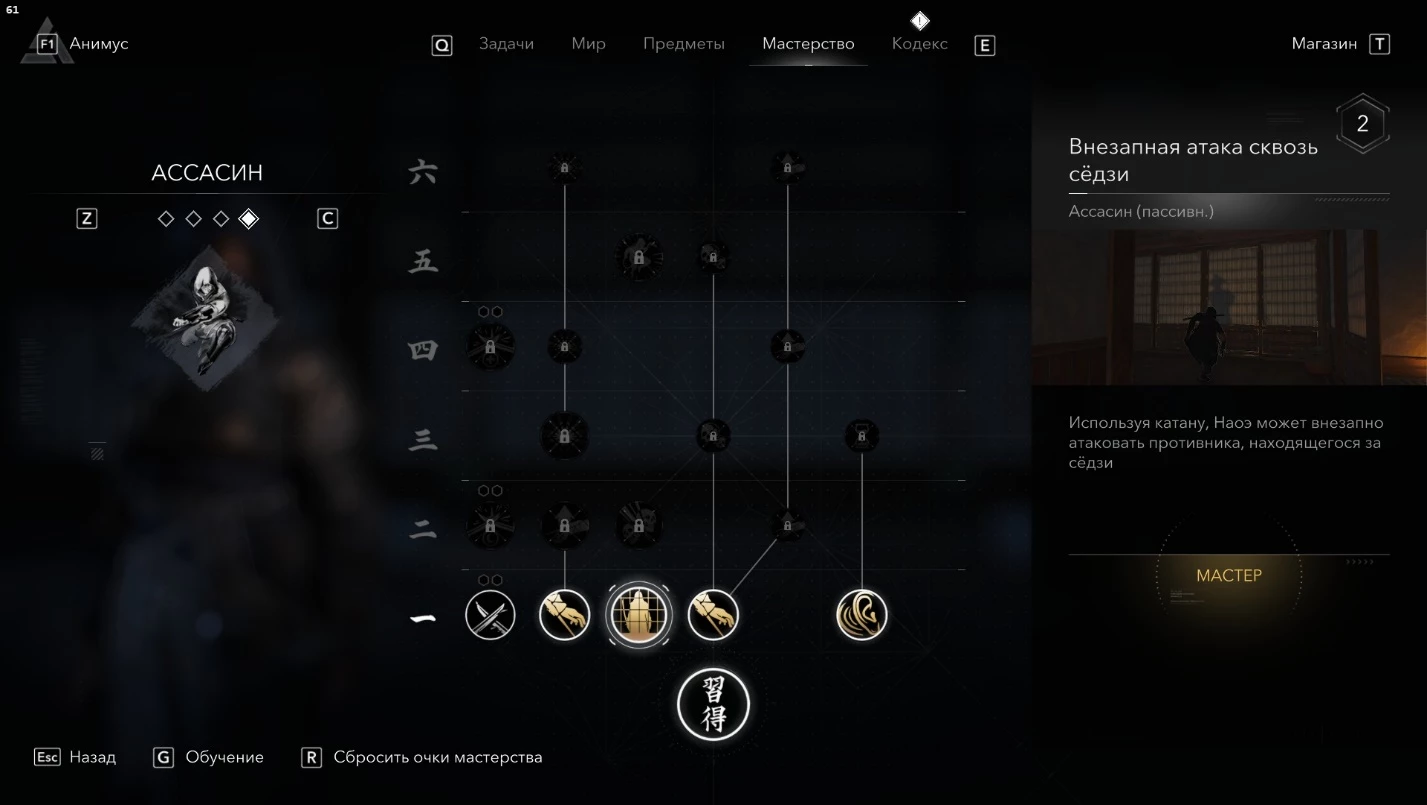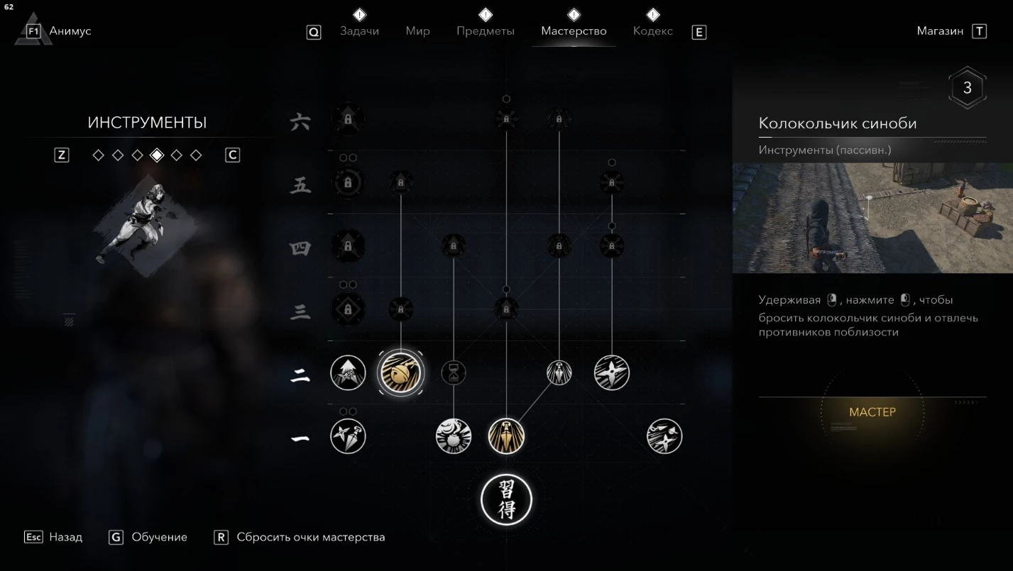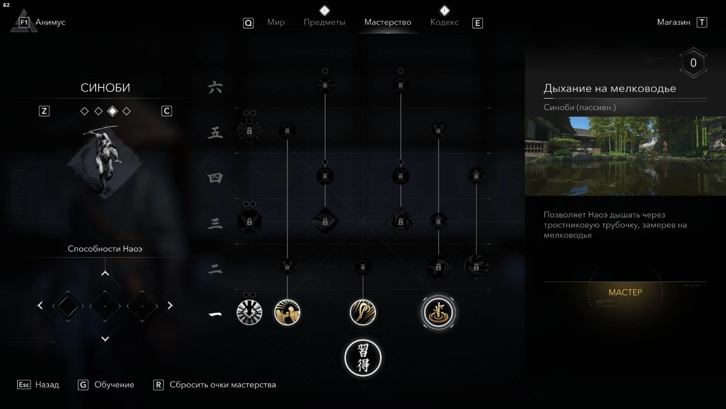 - Полной прокачки ветки "Синоби" (трофей "Искусство ниндзюцу").