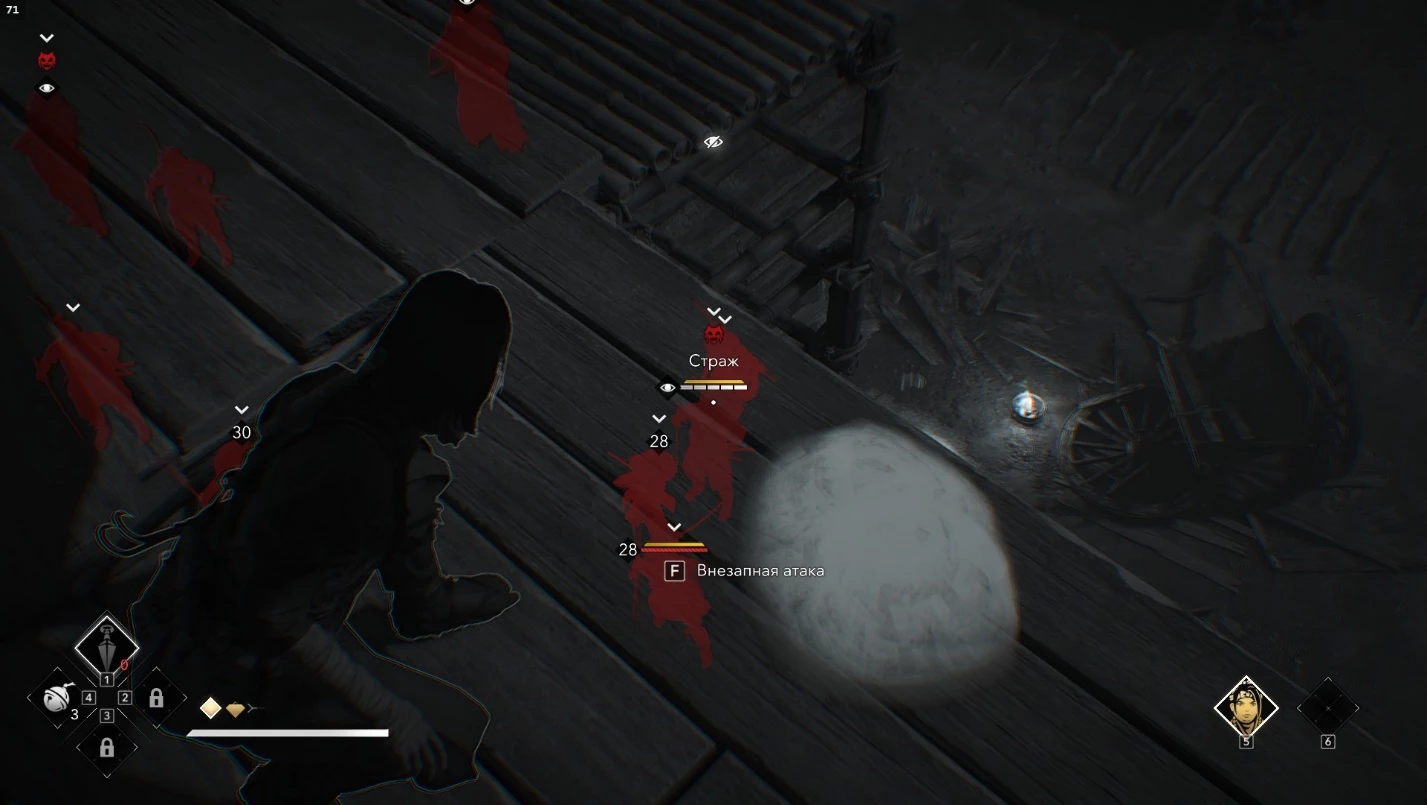 Невидимка. Совершите 5 убийств внезапной атакой подряд, избегая обнаружения и не вступая в бой. Счетчик достижений сбрасывается только в том случае, если заполняется «белая шкала обнаружения», которая становится желтой (враги встревожены, хоть и не агрессивны). Если получаете в начале, убедитесь, что при подкрадывании сзади вся полоска здоровья противника вместе с подсказкой о внезапной атаке становится красной (что указывает на гарантированное убийство).