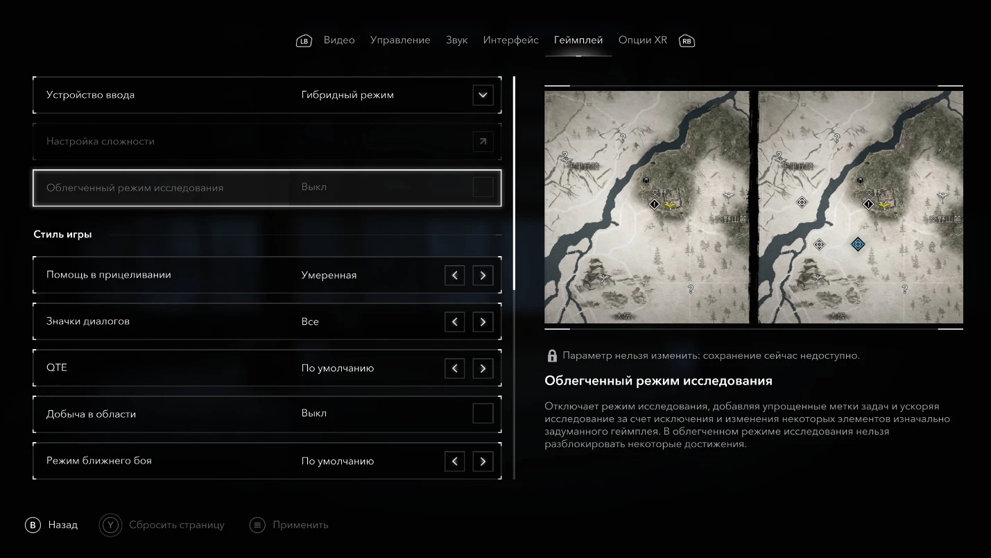 - Пропускаемые достижения отсутствуют. Однако, для получения трофея «Разведка местности» необходимо отключить режим "Облегчённого исследования", так как в этом режиме игра сразу указывает цели миссий. Данный режим можно включать и отключать в настройках геймплея в любой момент. Несмотря на предупреждение при создании сохранения, что "Облегчённое исследование" отключает некоторые ачивки, на практике это касается только одного трофея. Важно: ни одно из достижений в Assassin’s Creed Shadows нельзя пропустить навсегда. После завершения основной сюжетной линии можно свободно исследовать мир и собирать оставшиеся трофеи. Следует помнить, что при потере соединения лаунчера Animus Hub с серверами Ubisoft, сюжетные ачивки могут быть недоступны.