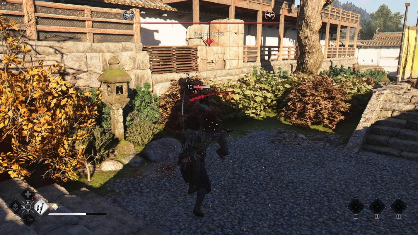 Секреты использования тростника. Чтобы скрыться от врагов, погрузитесь в мелкую воду и дышите через стебель тростника. Это станет возможным после изучения умения «Дыхание под водой» в ветке «Синоби». Затем найдите пруд, привлеките внимание противника, например, ударив его. Как только враг начнет вас искать, нырните в неглубокий водоем (это ключевой момент!) и зажмите клавишу C. Наоэ замаскируется и сможет дышать сквозь тростник. Глубокие рвы вокруг укреплений не подойдут из-за большой глубины.