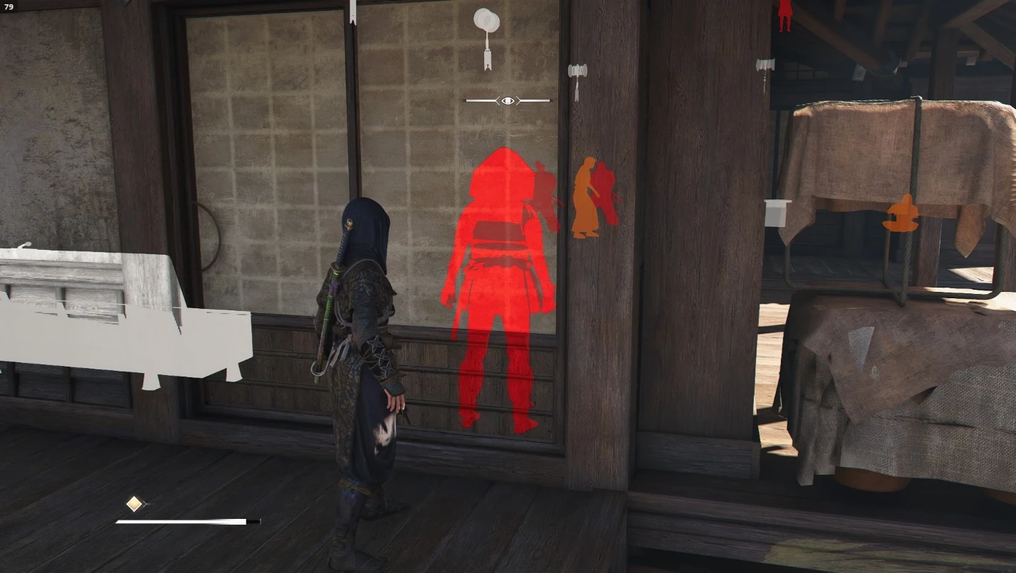 Синоби-мастер. Устраните врага внезапным нападением через дверь-сёдзи. Для этого необходимо освоить навык «Внезапная атака сквозь сёдзи» в ветке «Ассасин». Отправляйтесь в крепость или замок со зданиями, где есть такие двери. Подкрадитесь к двери, используйте режим наблюдения для выявления врагов и найдите точку, где появится подсказка для внезапной атаки.