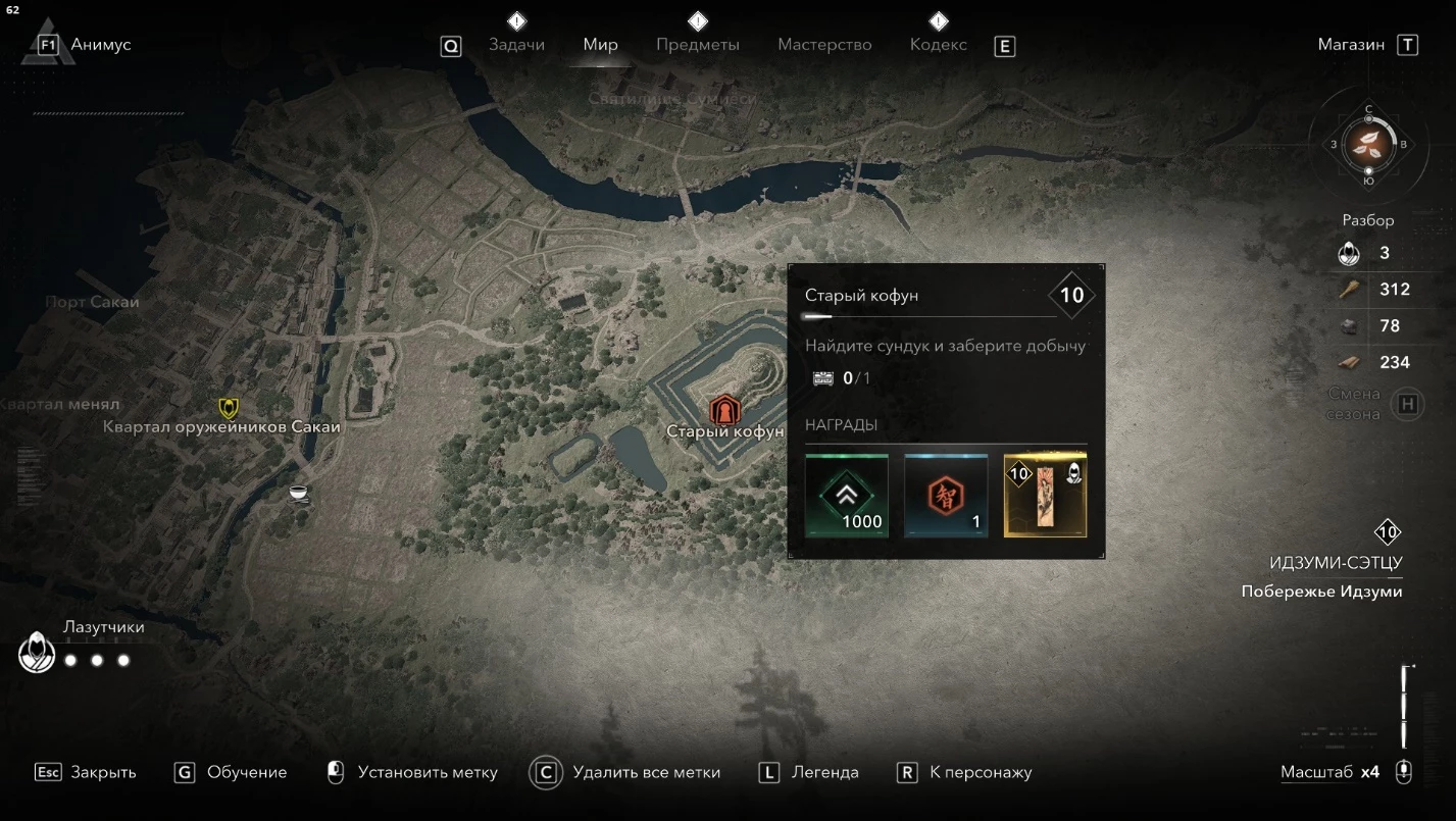 На крючке. Перемещайтесь между точками крепления крюка-кошки без касания земли. Подобные возможности встречаются в разных локациях. Например, внутри Старого кофуна в начале игры. В конце кофуна, перед легендарным сундуком, над водоемом расположены две точки для крюка. Используйте их для перемещения, избегая падения в воду. Другой вариант – воспоминания из прошлого Наоэ во время изучения первых четырех кудзи-кири.