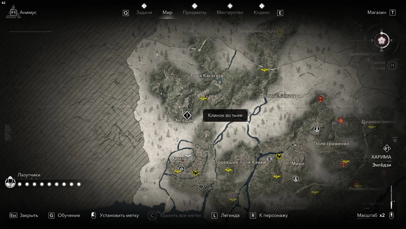 Мастер Дзен. Завершите все кудзи-кири. Это оранжевые маркеры, обозначающие места для медитаций Наоэ. Первые четыре Кудзи-кири в Идзуми-Сэтцу расскажут о прошлом Наоэ, но остальные не имеют особого значения, так что их выполнение не составит труда. Всего в игре 22 кудзи-кири. Активируйте все точки синхронизации, а затем направляйтесь к каждому «вопросительному знаку» на карте.