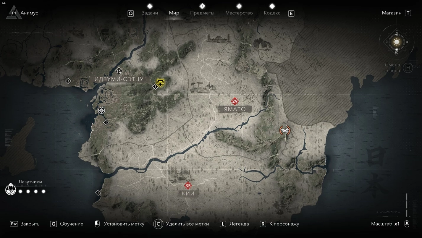 Картограф. Посетите все провинции, отмеченные на карте. В Assassin's Creed Shadows их насчитывается девять: Идзуми-Сэтцу, Ямасиро, Харима, Ига, Оми, Ямато, Вакаса, Тамба и Кии. Скорее всего, вы посетите их в процессе прохождения игры.
