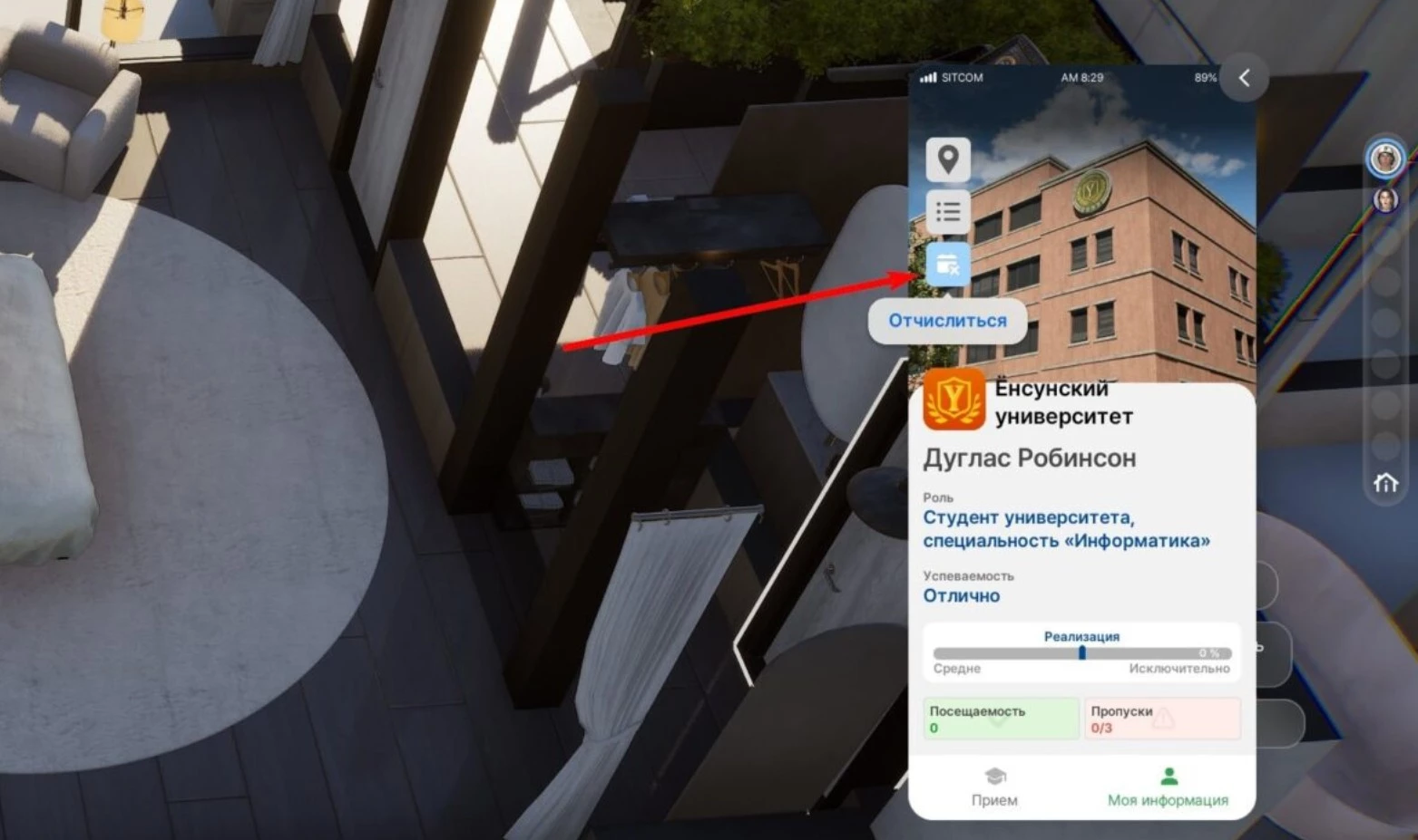 Если принято решение прекратить обучение, всегда можно отчислиться. Для этого в приложении «Школа» перейдите во вкладку «Моя информация». Нажмите на нижнюю иконку в левом верхнем углу смартфона и подтвердите действие. После отчисления можно поступить в университет повторно, но прогресс будет потерян.