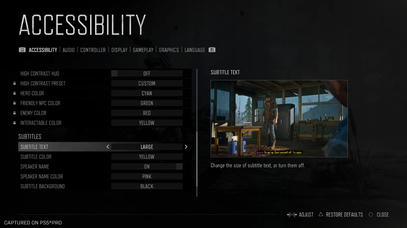 В Days Gone Remastered улучшили звук и добавили аудио-комментарии. Есть голосовые подсказки для интерфейса (включены по умолчанию) и звуковые сигналы при приближении к коллекционным предметам, сопровождаемые вибрацией DualSense.