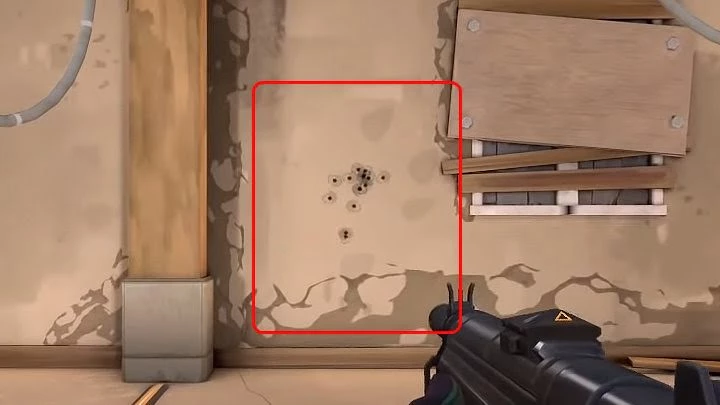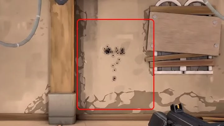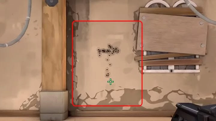 Изображение выше показывает пример распространения вандала. Тест проводился со среднего расстояния – чем ближе цель, тем меньше разброс пули. В то время как первые две пули более или менее точны, следующие попадают над целью, а затем немного вправо – вам нужно хорошо контролировать оружие. На последнем этапе распыления распространение пули перемещается слева направо.