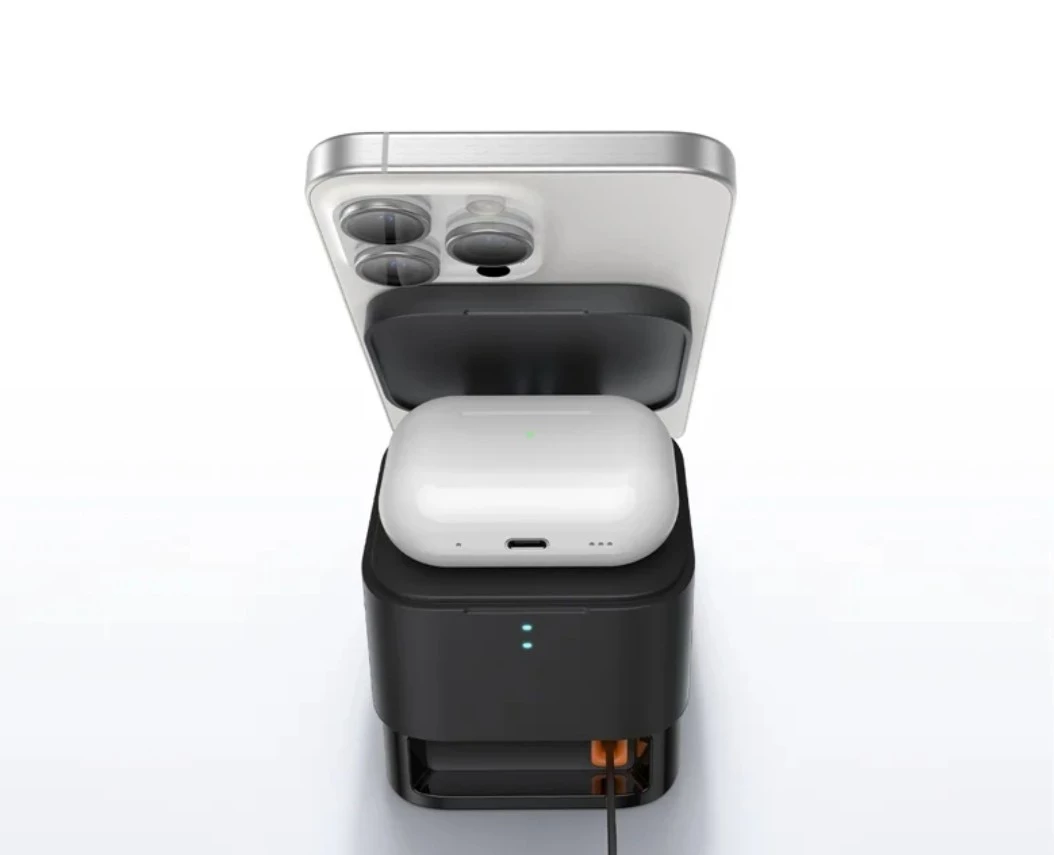 Устройство также оснащено разъемом USB-C для зарядки Apple Watch, позволяя одновременно заряжать три устройства.