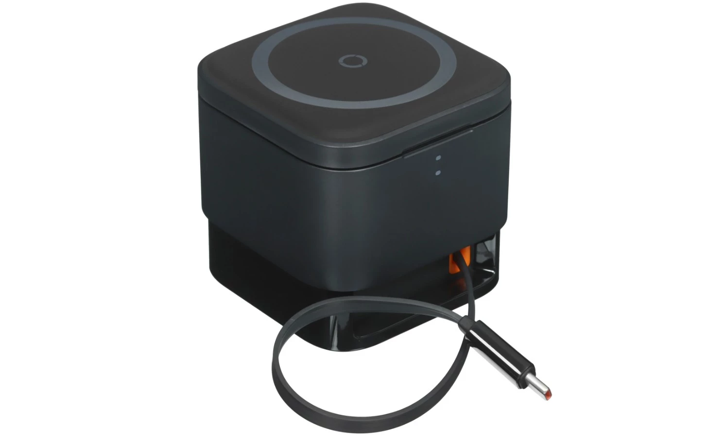 Baseus MagPro 2-в-1 Magnetic Wireless Charger 25W представляет собой функциональное зарядное устройство с оригинальным дизайном. Устройство выполнено в виде небольшого куба из черного пластика.