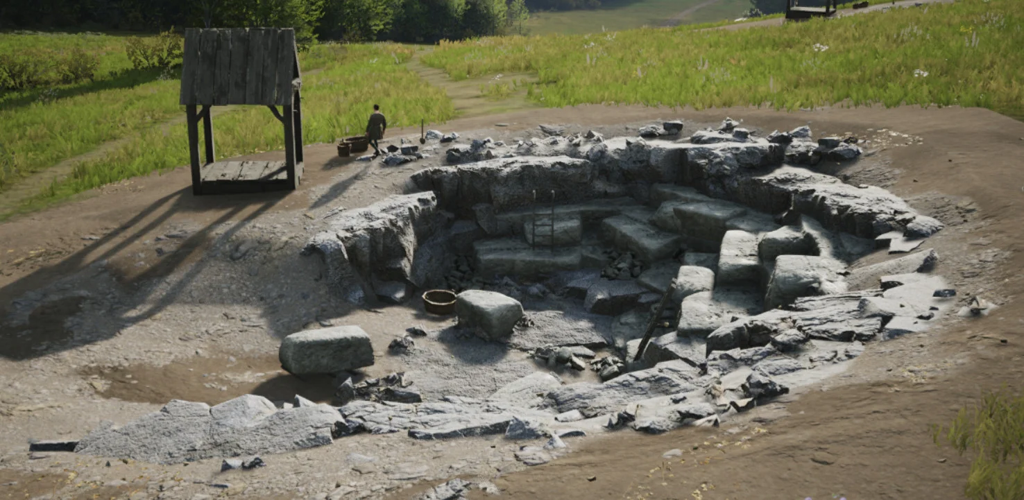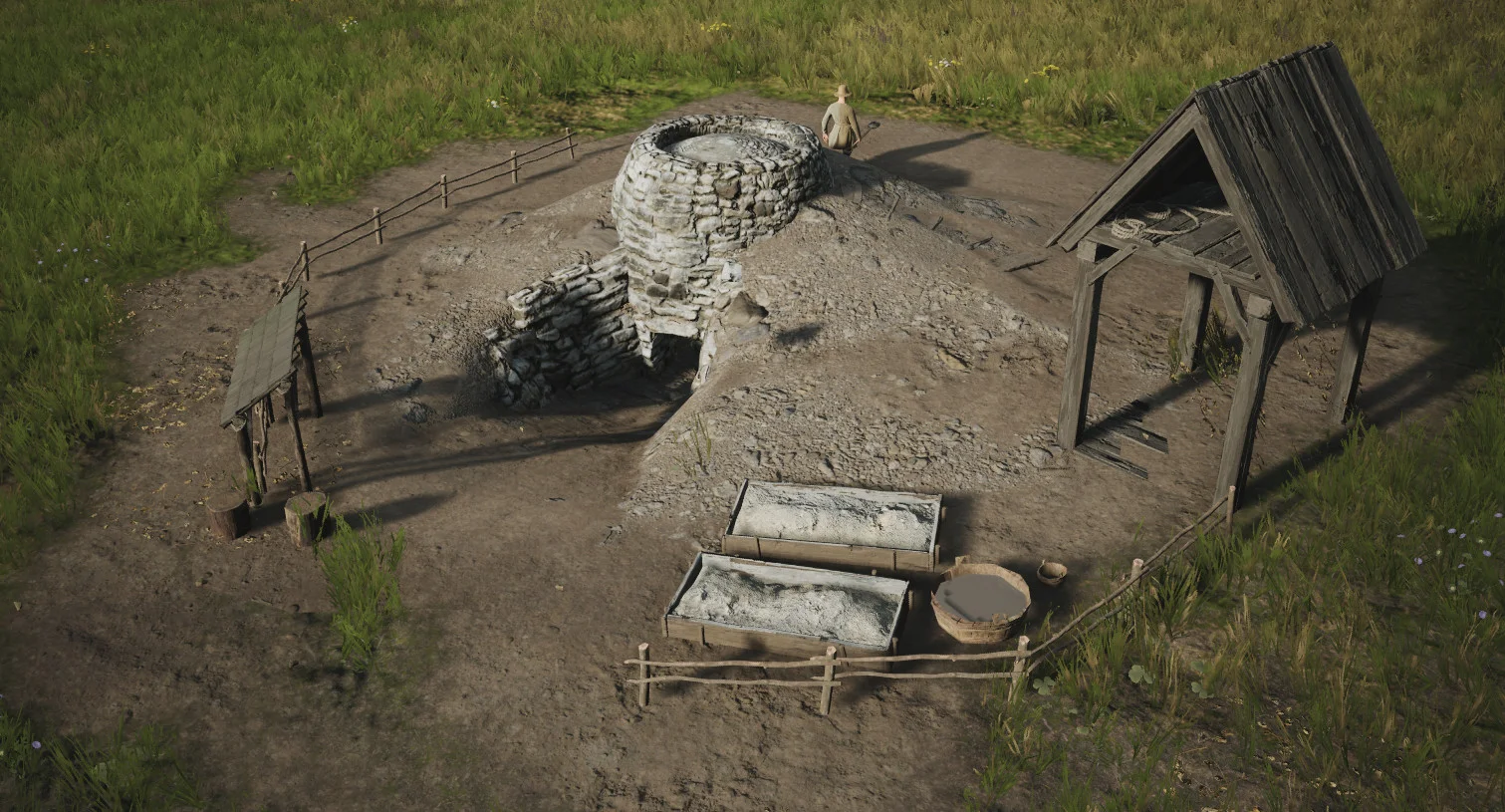 Каменное строительство станет важной частью Manor Lords в будущем. Для добычи камня появится карьер, а для производства строительных материалов – печь для обжига извести.