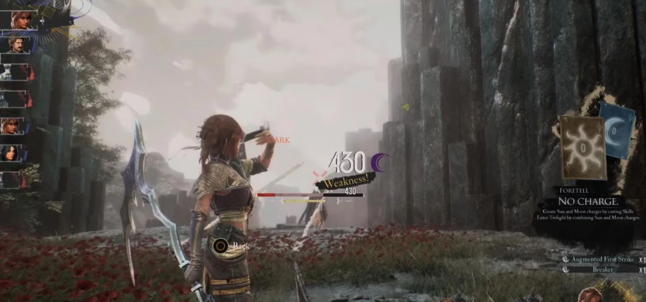 Когда Сиэль применяет свои умения, она получает заряды двух типов: солнечные и лунные. Эти заряды, отображаемые справа на экране, влияют на её боевые возможности, предоставляя различные бонусы в зависимости от их комбинации: