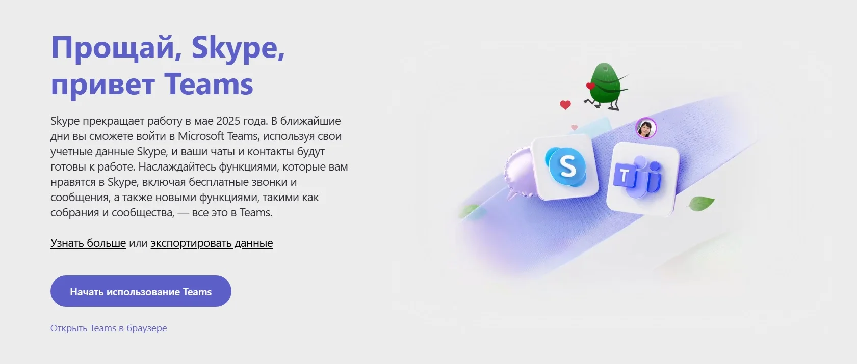 Детали переноса информации из Skype доступны на веб-сайте Microsoft. Инструкция представлена на русском языке. Указано, что после января 2026 года все данные будут удалены автоматически.
