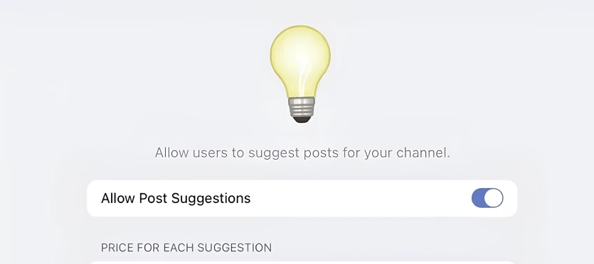 «Взимайте плату с пользователей за возможность предложить один пост для вашего канала. Взимая эту плату, вы не обязаны публиковать какие-либо предложения. Вы будете получать 85% от выбранной суммы за каждое поступившее предложение»— описание функции в Telegram