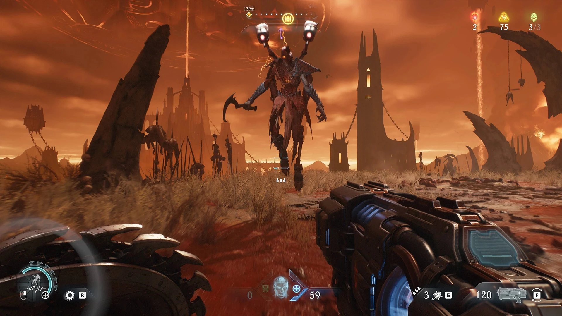Визуалка тут тоже на уровне. Может, она и не сильно скакнула вперед по сравнению с Doom Eternal (несмотря на разницу в поколениях железа), но все равно выглядит круто. Особенно когда бегаешь по огромным полям сражений, где на заднем плане кипит жизнь. И оптимизация в The Dark Ages вообще поражает.