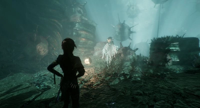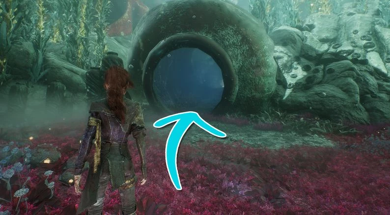 При выборе "Изучить" ваши спутники обратят внимание, что Деминер не проявляет агрессии и не имеет при себе подводной мины – стандартного вооружения этих существ. Для завершения задания необходимо найти целую мину и отдать ее Деминеру. Мина находится в той же локации, и для ее получения вам предстоит преодолеть небольшое, но на данный момент сложное (пока вы не добрались до Жестральского берега за Селением жестралей!) платформерное испытание. К счастью, сражаться ни с кем не придется.
