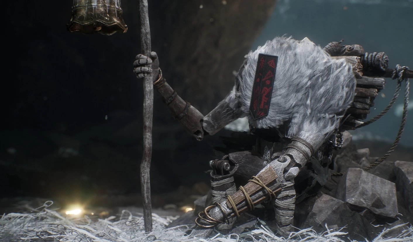 Исследуйте область за лабиринтом. Вы найдёте несколько светящихся фиолетовым предметов, включая деревянные плашки на наклонной крыше в центре. Это и есть искомый предмет. Поднимитесь по крыше, повернитесь на юг и зацепитесь за выступ. Двигайтесь на юго-восток, перепрыгните уступ и зацепитесь за выступ на востоке. Добравшись до холма, где ранее находилась красящая станция, вернитесь к духу и передайте плашки, завершив побочный квест. Дух обернётся дверью, и в награду белый неврон даст вам пиктос «Защитное исцеление» (исцеление союзника добавляет броню на 1 ход).
