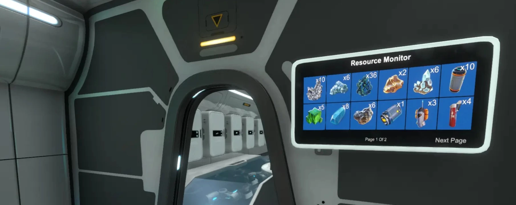 Управление инвентарем играет важную роль в Subnautica, поскольку ресурсы, собранные во время исследований, обычно переносятся с транспорта вручную.