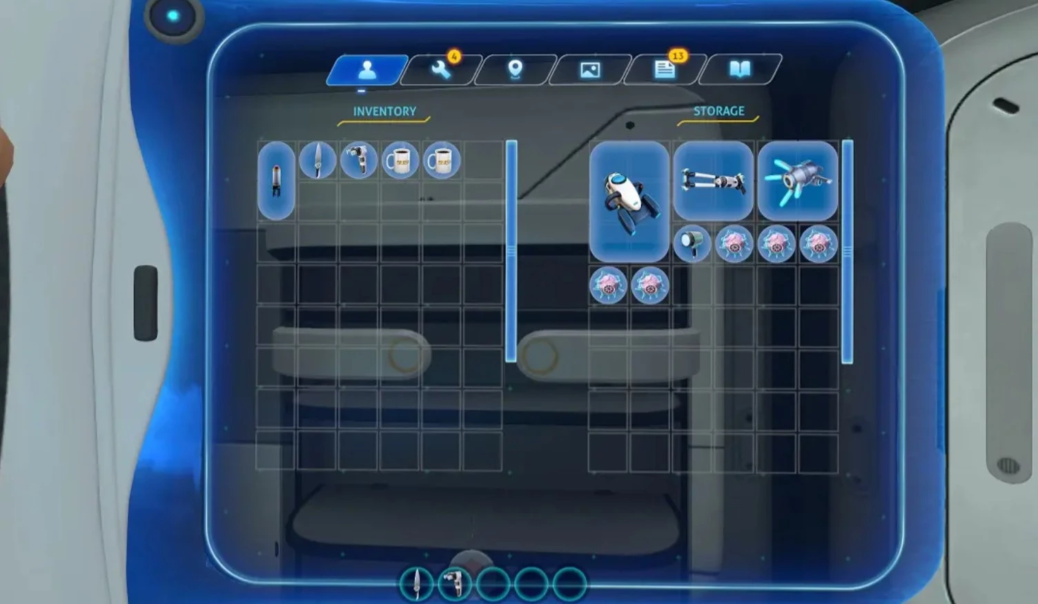 Стандартный инвентарь Subnautica может быть приемлем, но наиболее удобен он для игроков с геймпадом.