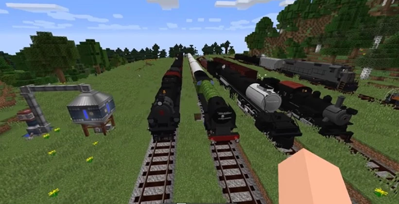 Traincraft позволяет перевозить блоки и предметы в поездах, что гораздо увлекательнее, чем носить их в инвентаре. Мод предлагает более 80 моделей поездов, чтобы разнообразить грузоперевозки. Даже сундуки оценят смену локомотива!